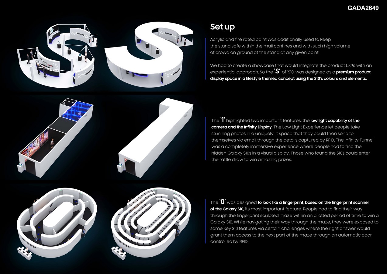 Each element of the ‘S10’ (S, 1 and 0) were designed as interactive displays cum experiential zones. The 3-day event truly established the Galaxy S10 as the Next Generation Smartphone to the targeted audience within the mall and on social media as a huge PR stunt.