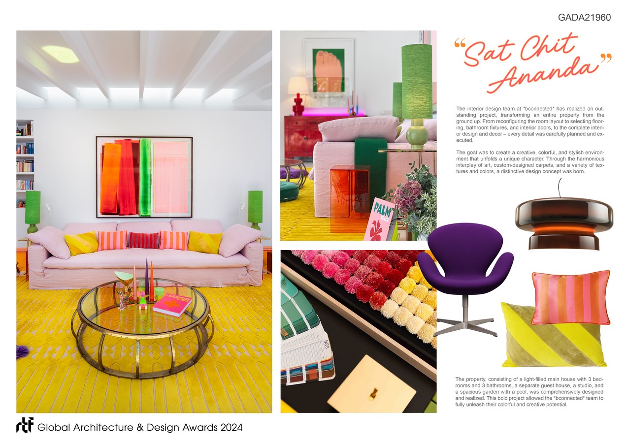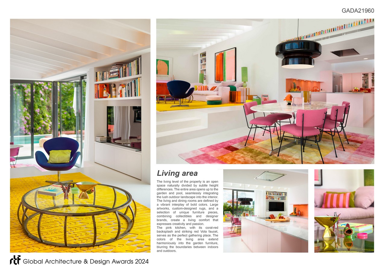 - Overall Concept: bconnectedwas tasked with designing a creative and stylish home that brings a vibrant and welcoming atmosphere through a bold color concept and innovative design solutions. The color scheme was to be vibrant yet harmonious, integrating both the interior and exterior spaces, ensuring a seamless flow between them.