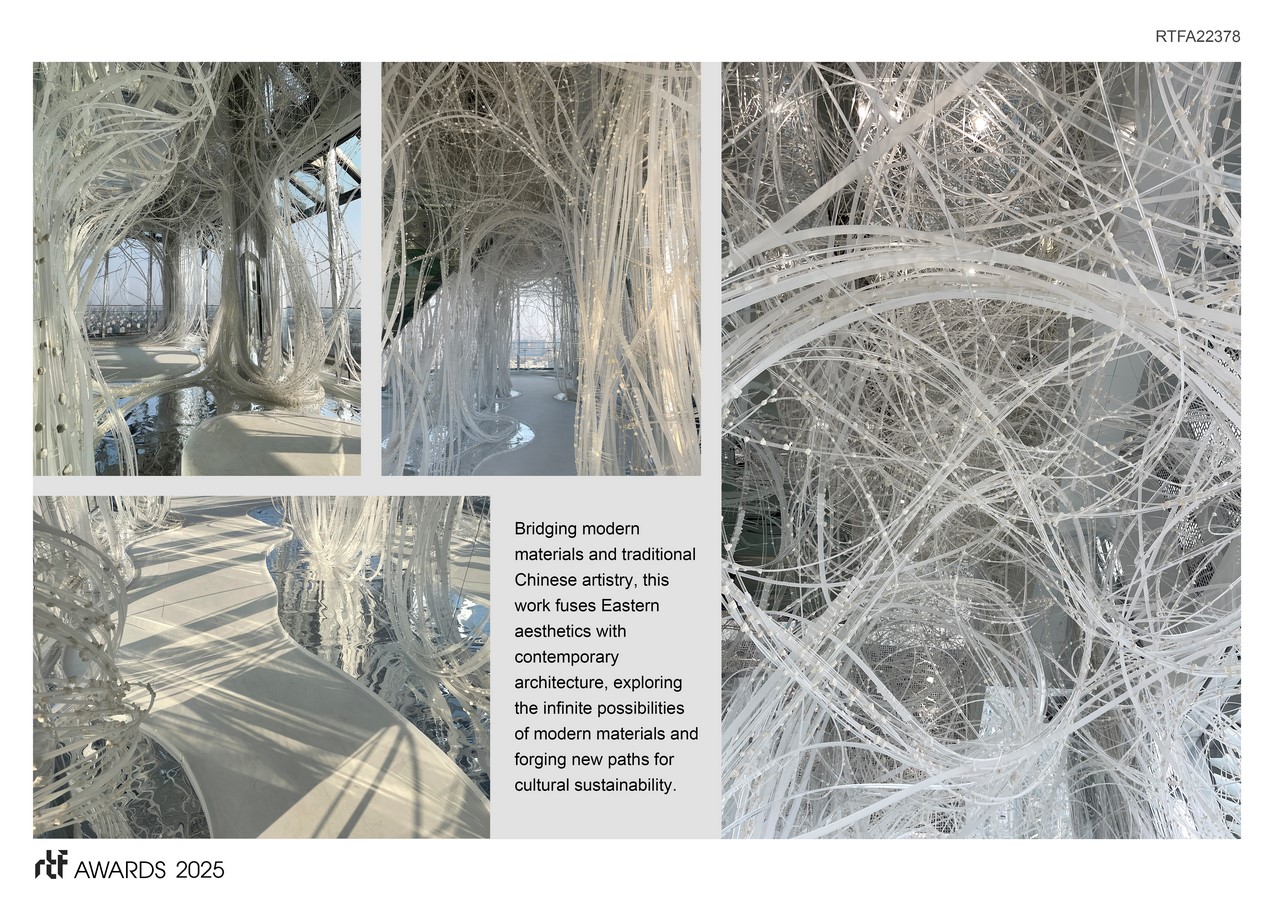 Bridging modern materials and traditional Chinese artistry, this work fuses Eastern aesthetics with contemporary architecture, exploring the infinite possibilities of modern materials and forging new paths for cultural sustainability.