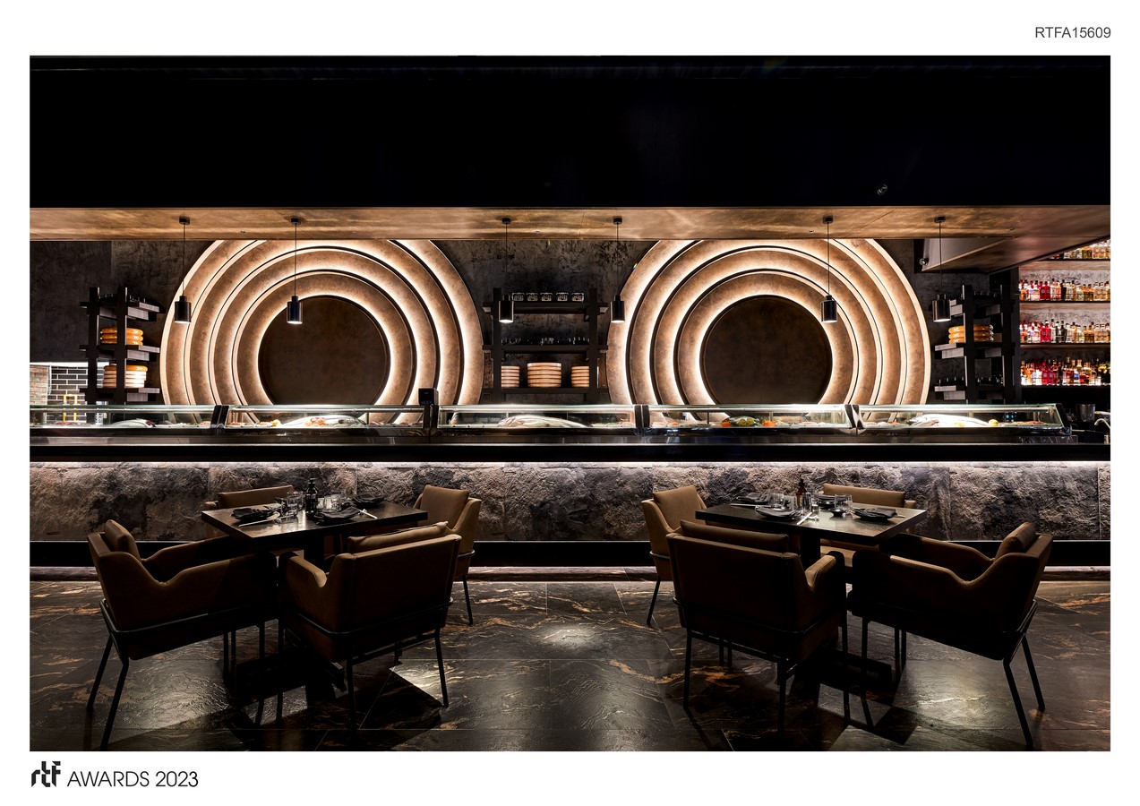 In a room that receives 122 guests, its interior is wrapped in traditional Japanese materials such as wood placed on ceilings and walls, they are a disruption of natural stone which gives it that urban touch. Taking into account its Japanese heritage, it combines the use of simple lines in combination with clean and simple volumes, which combine different textures and materials, making the design remain rich in design, while still having the representative sophistication of the brand.