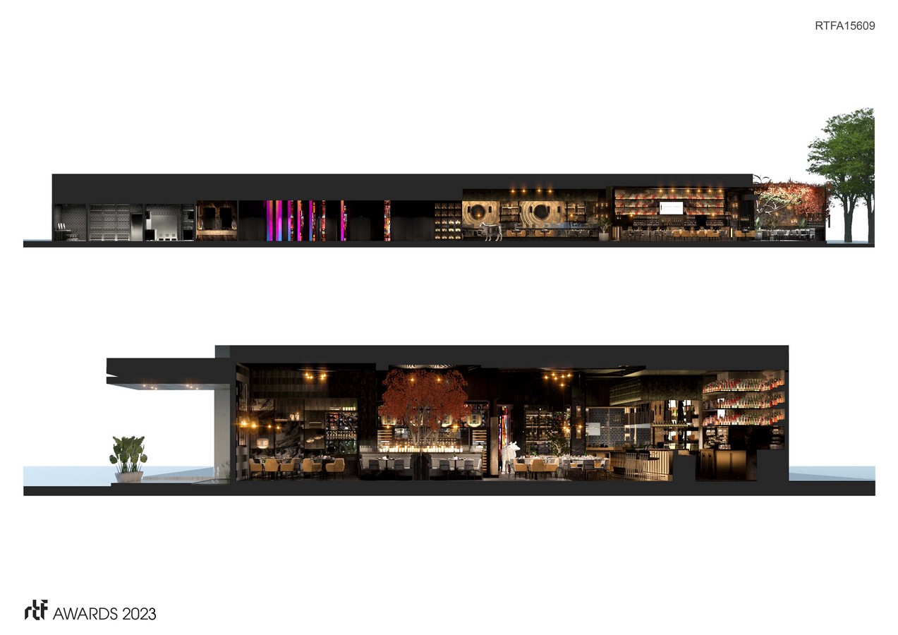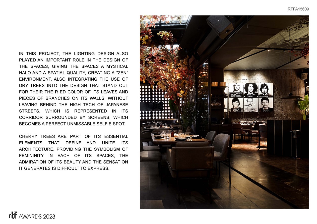 In this project, the lighting design also played an important role in the design of the spaces, giving the spaces a mystical halo and a spatial quality, creating a “zen” environment, also integrating the use of dry trees into the design that stand out for their the r ed color of its leaves and pieces of branches on its walls, without leaving behind the high tech of Japanese streets, which is represented in its corridor surrounded by screens, which becomes a perfect unmissable selfie spot.