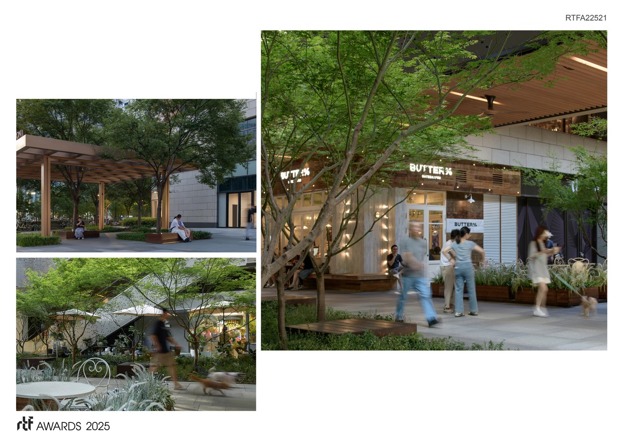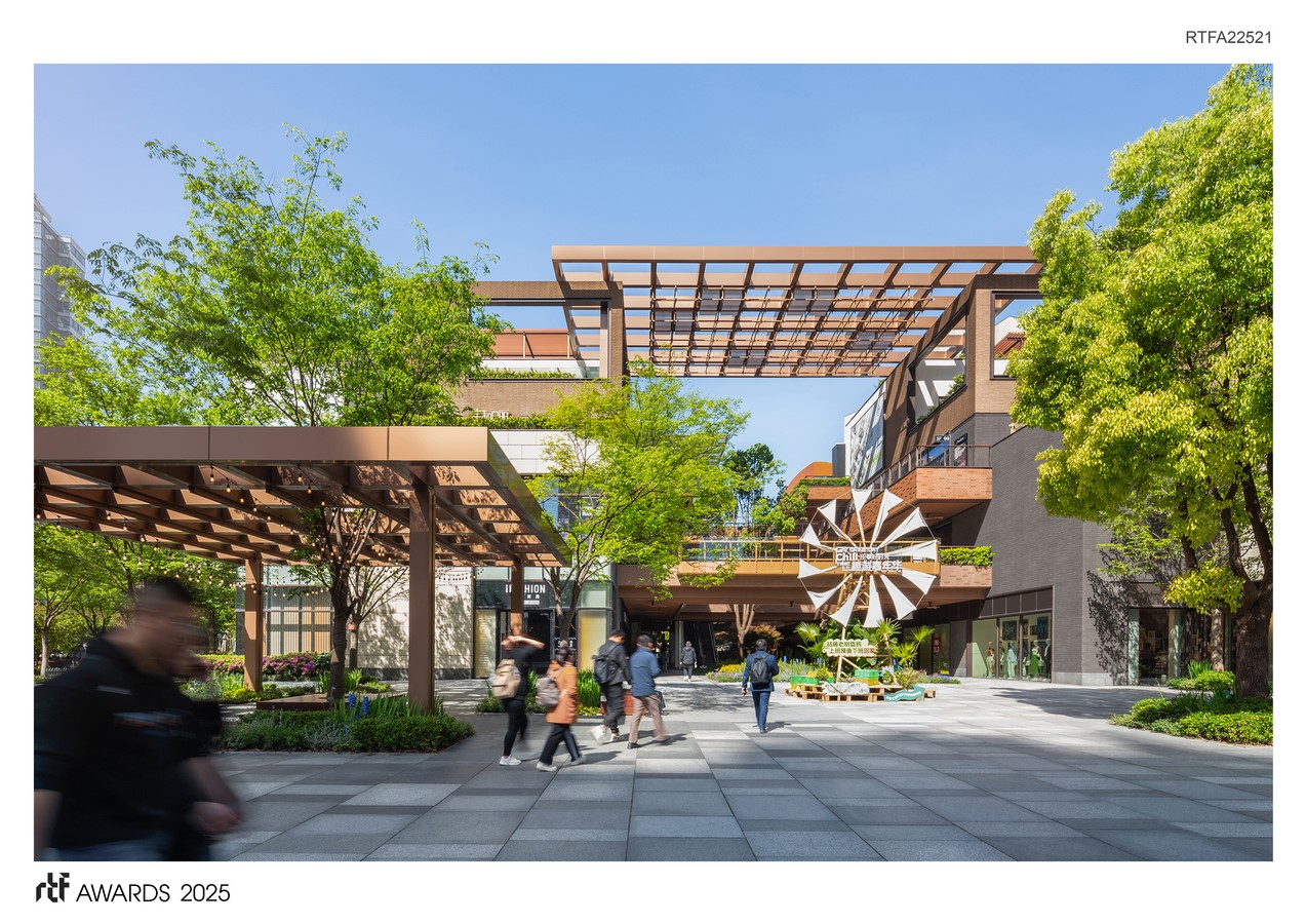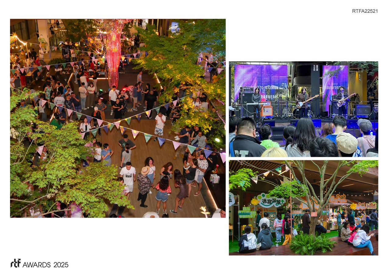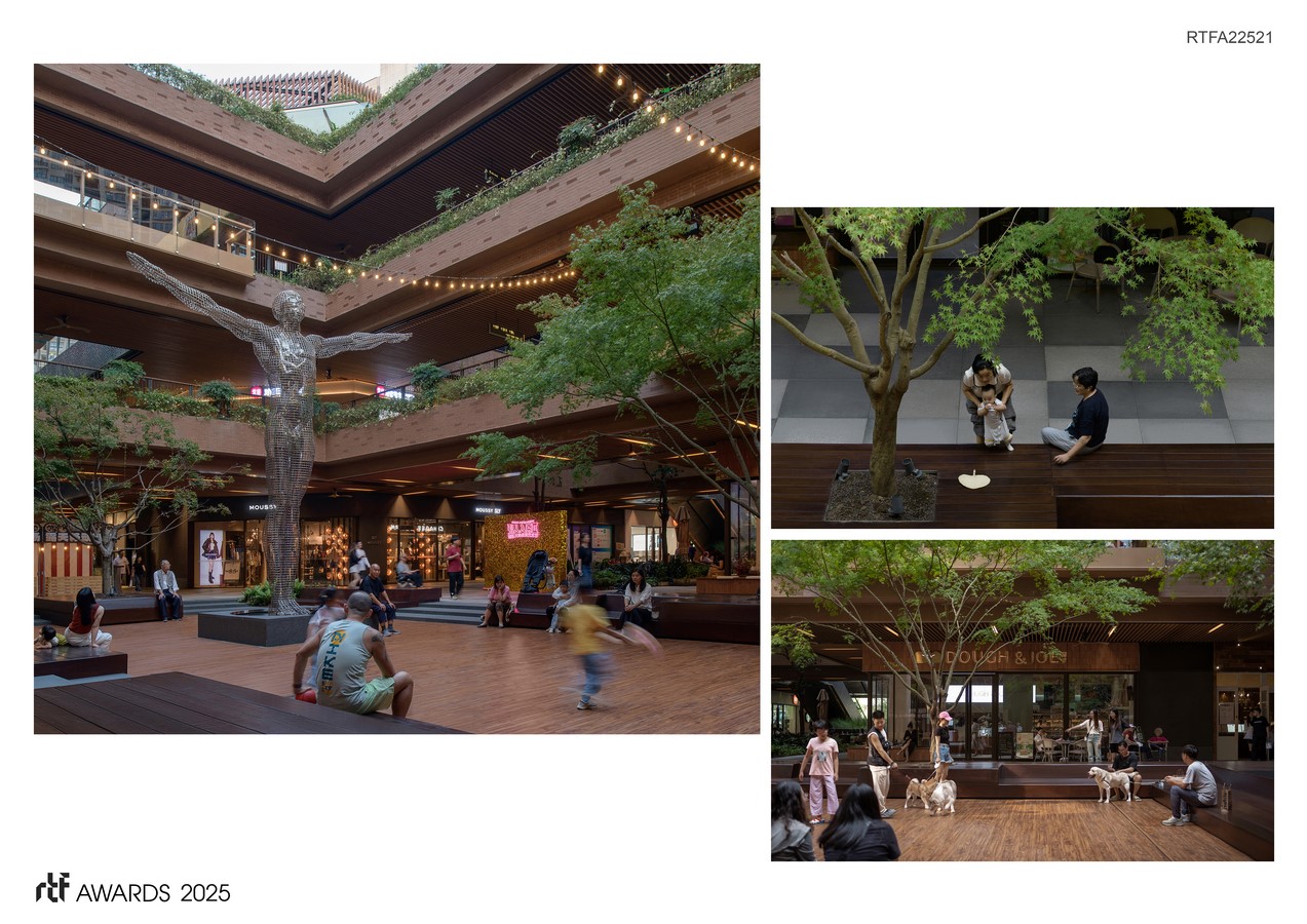 The design team integrated future shops into the consideration of spatial character. The design team envisioned a socially-integrated public realm without clear boundaries between indoor and outdoor. Based on the shops distribution, we strategized a garden village with “organic lifestyle integration”, differentiating brands into various lifestyle scenes, and making efficient use of available outdoor space for integrated display of public life.