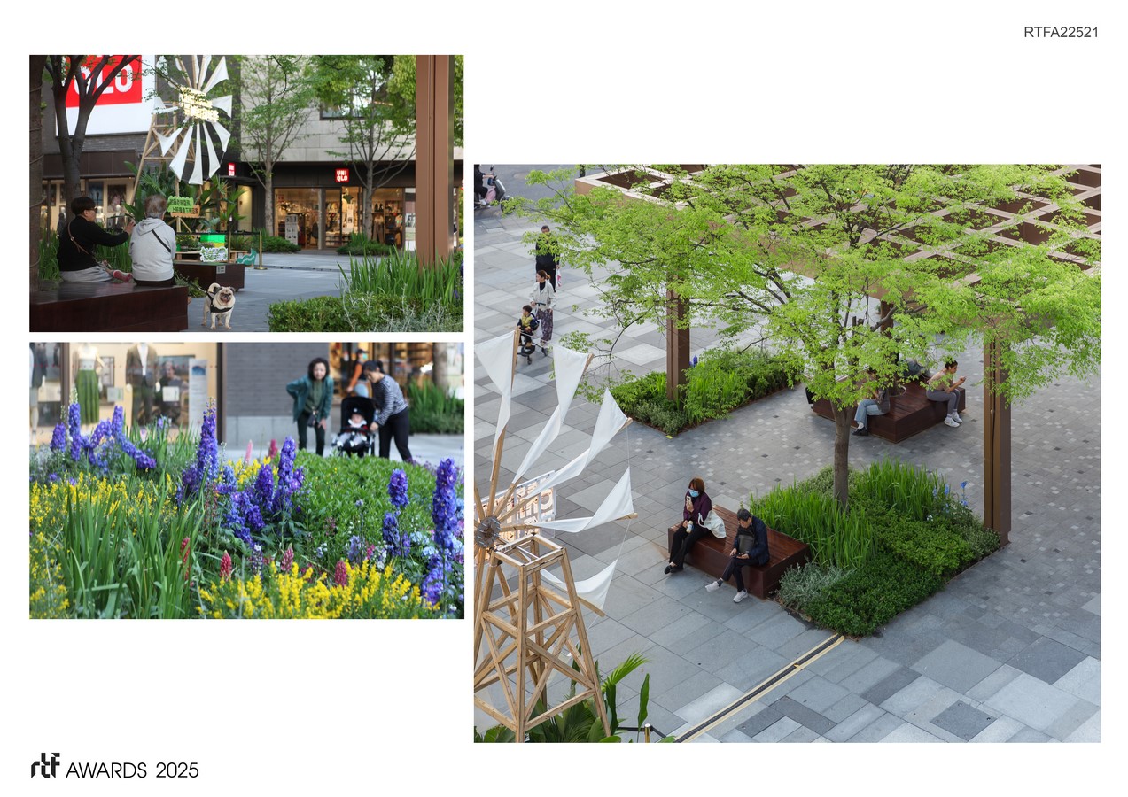 During the design process, we also preserved and re-used existing elements such as the existing sculpture, rounded stepping stone, water feature and street pavage. Existing mature trees such as zelkova, maple and camphor trees were also kept. The ambience of “intimacy and warmth” hosts a variety of social lifestyles in an open community, acting as a community-centric thermometer, maintaining the right balance between “new” and “old”.