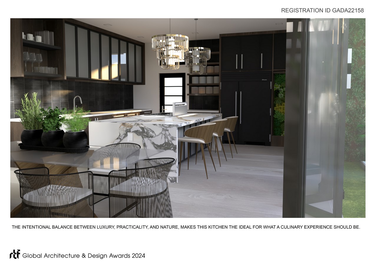 Throughout the interior of the home, the base are neutral tones and natural materials to create a warm and earthy atmosphere. Strategically placed large windows and doors to bring in an abundance of natural light to help reduce the need for artificial lighting while enhancing the connection with the outdoors. The design was thoughtfully curated to encourage the balance of aesthetics, functionality, and practicality, blurring the lines of where nature begins and ends.
