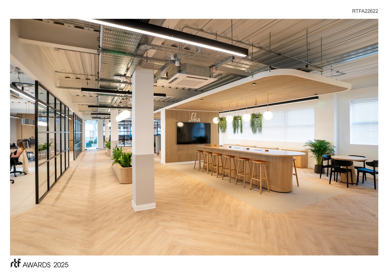 Sika was designed and fit-out by Liqui Group and aimed to create an innovative, functional workspace that reflects Sika’s brand values while enhancing employee productivity and well-being. This project integrates sustainability, design aesthetics, and functionality to deliver an environment that meets the evolving needs of a contemporary workforce.