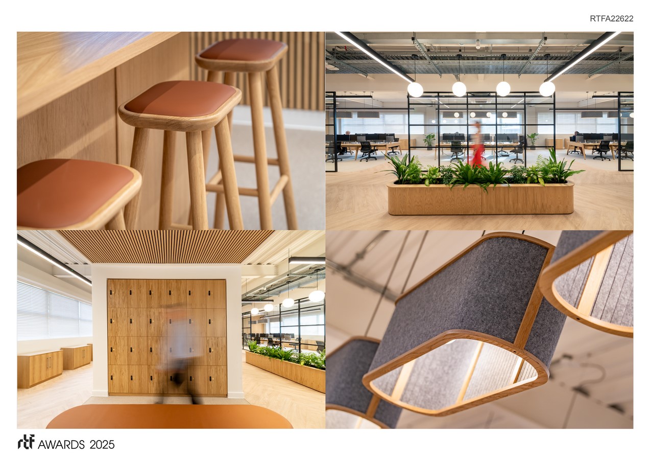 – Spatial Layout: The design incorporates an open-plan layout that promotes communication and collaboration. Meeting rooms and breakout spaces are strategically located to facilitate teamwork and spontaneous interactions, while quiet zones are designed to minimize distractions for individual tasks.