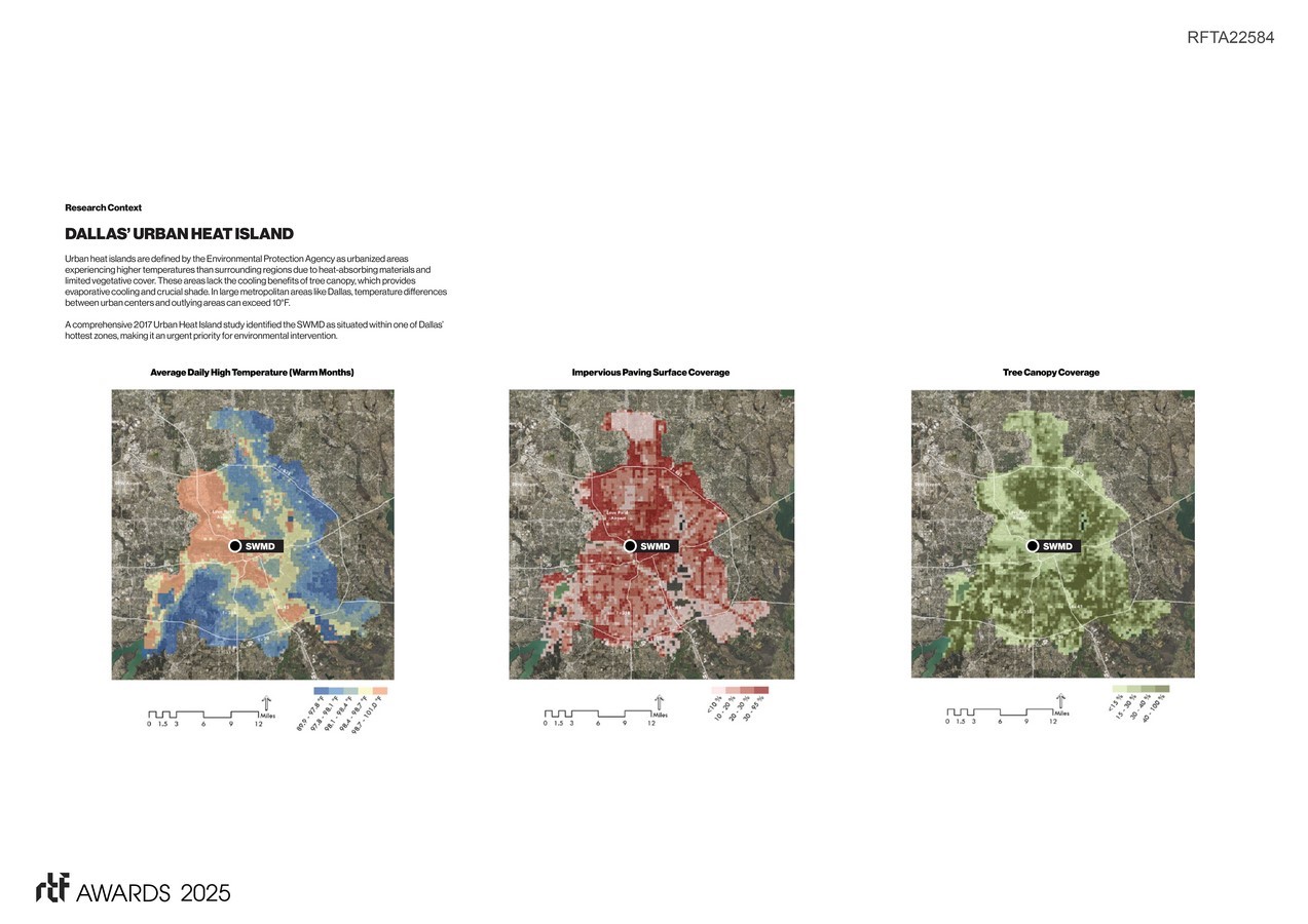 The Southwestern Medical District (SWMD), serving 8 million patients, providers, students, and visitors annually, faces critical environmental challenges due to its location in one of Dallas’ hottest urban heat islands and a severe lack of quality green spaces.