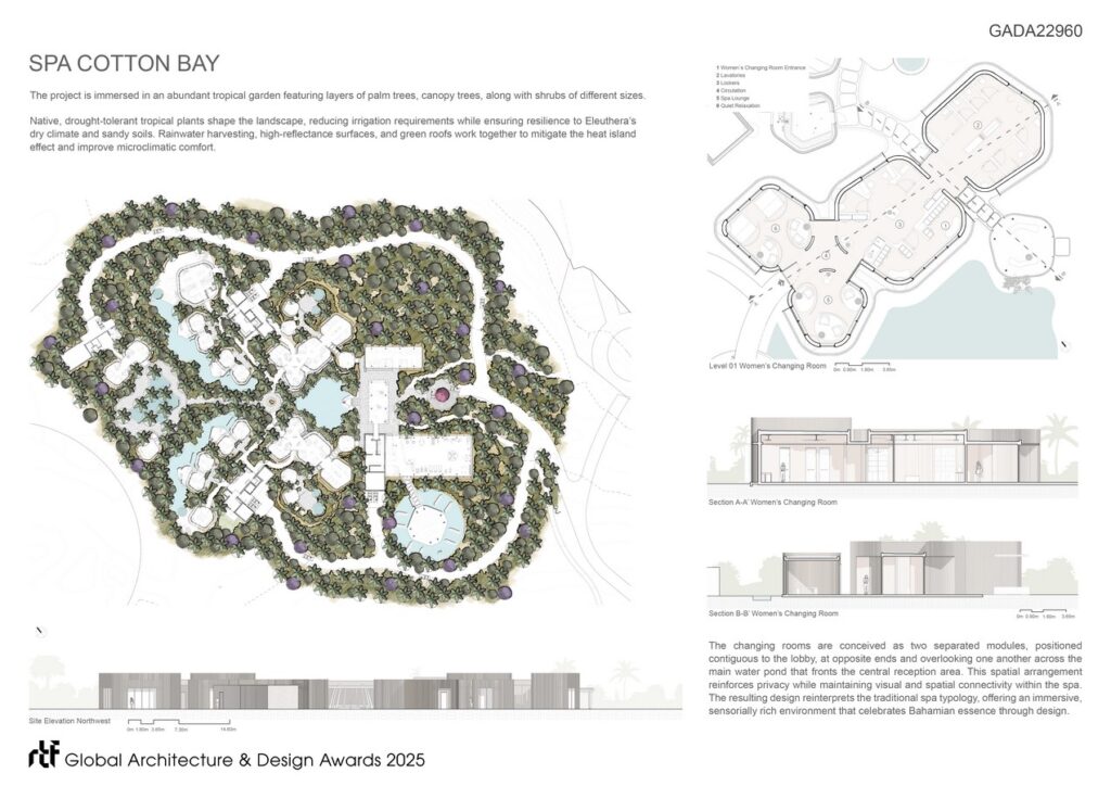 Rooted in the cultural and ecological heritage of the Bahamas, the Ananas Spa redefines the spa typology through an architecture inspired by the organic geometry of the pineapple—an enduring symbol of the islands’ agrarian traditions. Located within the Cotton Bay Resort by The Ritz-Carlton in Eleuthera, the project forms an essential component of the master plan, designed to elevate holistic wellness while embracing sustainable practices.