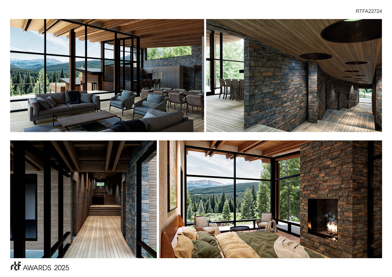 Altogether, these architectural strategies serve to decentralize the mass of the plan and create a foil to the over-scaled Lodge archetype typical of the area.