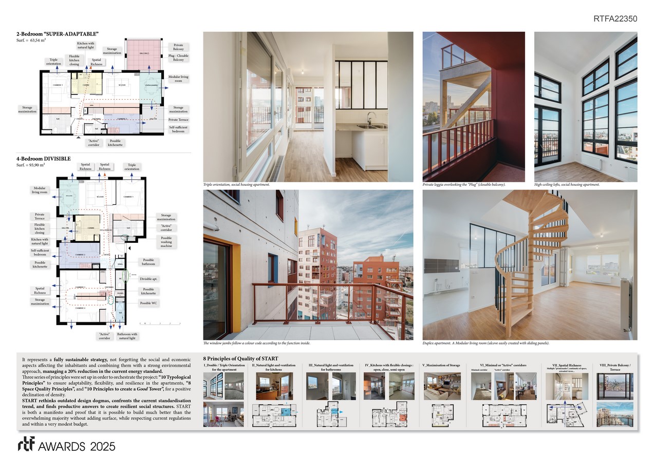 START rethinks outdated design dogmas, confronts the current standardisation trend, and finds productive answers to create resilient social structures. START is both a manifesto and proof that it is possible to build much better than the overwhelming majority without adding surface, while respecting current regulations and within a very modest budget.