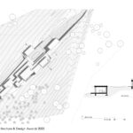Each floor level is directly connected to the changing grade as the house terraces down the slope, giving the occupants easy access to the site by way of outdoor terraces that are complemented by adjacent sod roofs. The main house’s upper floor provides dedicated private space for the owner while the lower floor is primarily for children and guests. The separate guesthouse is set at an even lower level than the main house, let into the hillside for maximum privacy and minimal visibility from above. The main house looks over the top of the guesthouse’s sod roof with unobstructed views.