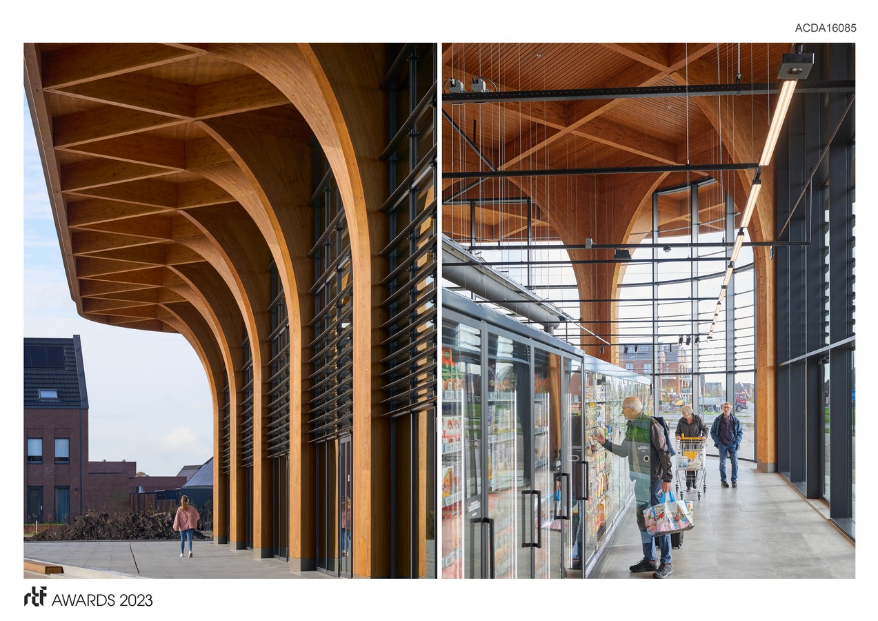 SuperHub offers the Meerstad neighbourhood an opportunity for varied functionality, and currently includes a supermarket and a café. The open and spacious building functions as a meeting place for residents in addition to its function of providing food. Our aim was to make the shopping experience personal and social again, and to offer residents a refreshing alternative to the increasingly popular express delivery services. The impressive spatial qualities of the structure are essential here to fulfil its purpose as an attractive and multifunctional community centre. This way, the supermarket becomes a place for everyday groceries as well as way for meeting each other, thereby contributing to the social sustainability of the Meerstad neighbourhood.