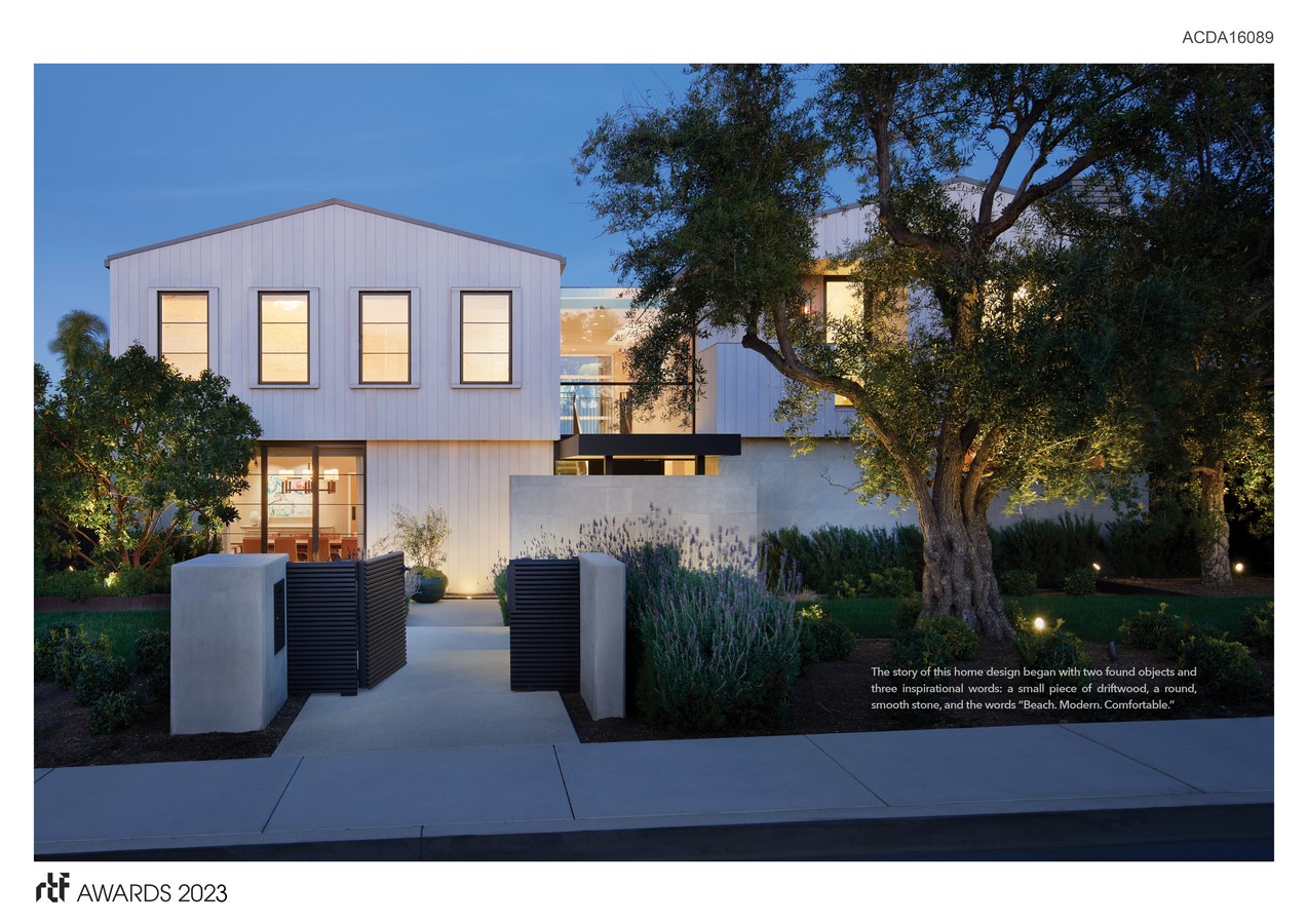 The story of this home design began with two found objects and three inspirational words: a small piece of driftwood, a round, smooth stone, and the words “Beach. Modern. Comfortable.”