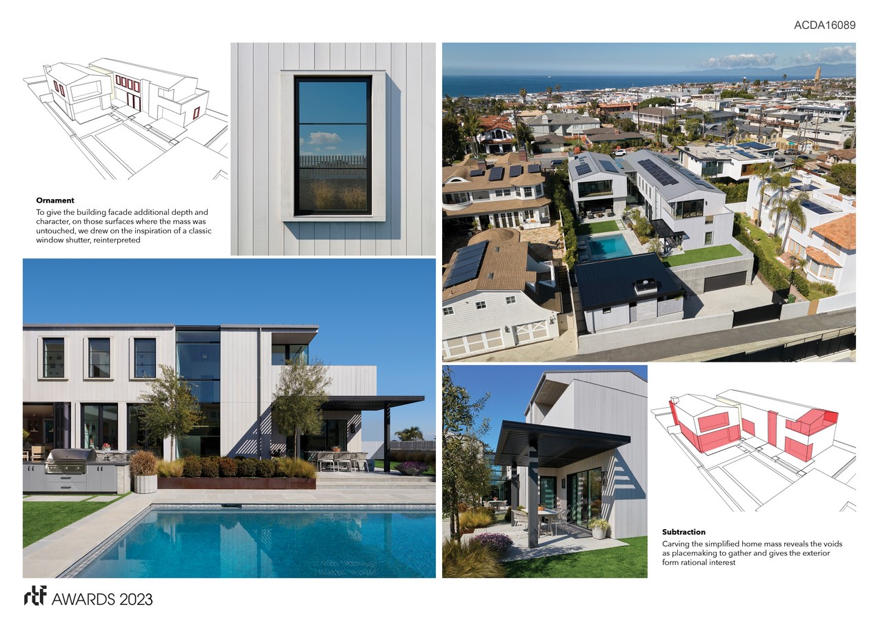 The design form was a modern interpretation of a beach shack with a pitched roof and a simplified expression of punched openings.