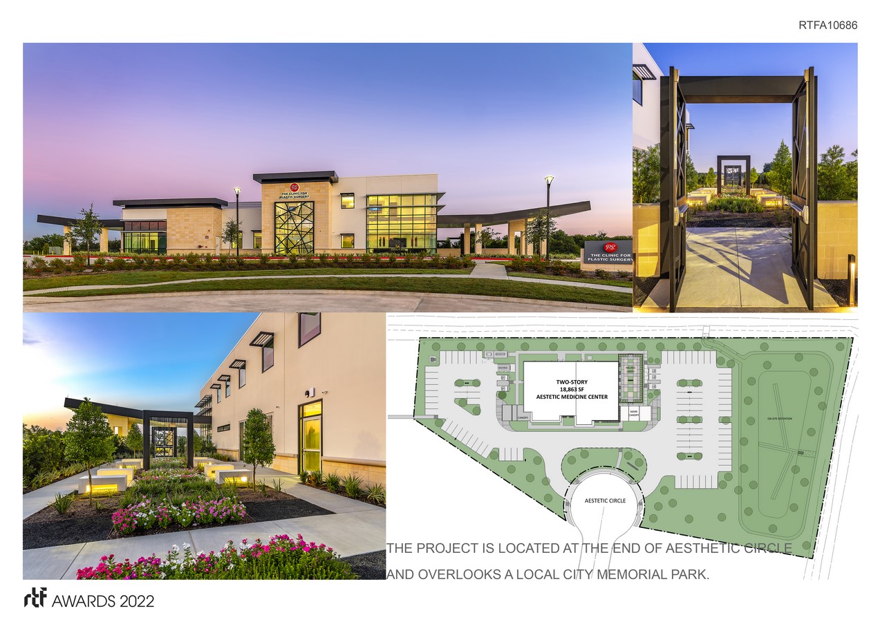 The Owner desired a contemporary, state-of-the-art facility for his successful aesthetic medicine practice in Houston to be located on a 3.5-acre greenfield site in Houston, Texas. The Owner’s goal was to create an inspiring yet calming destination for his discerning clientele.