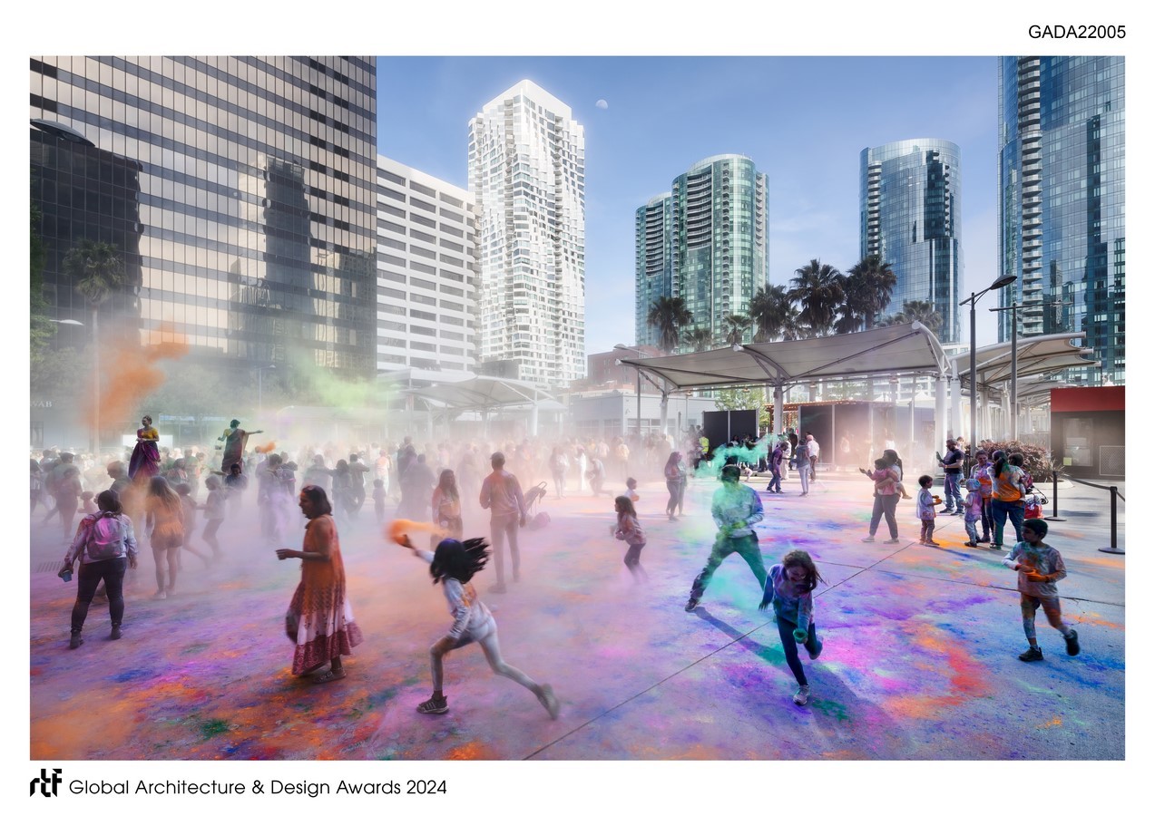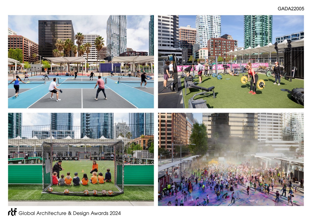 It brings people together with around-the-clock activations and amenities to celebrate community, promote active wellness, and enjoy a dynamic spectrum of entertainment experiences. The project is committed to the idea of partnership driving investment, community, and sustainability. The site is free and open to the public and activates future development parcels that would otherwise be fenced off during entitlements.
