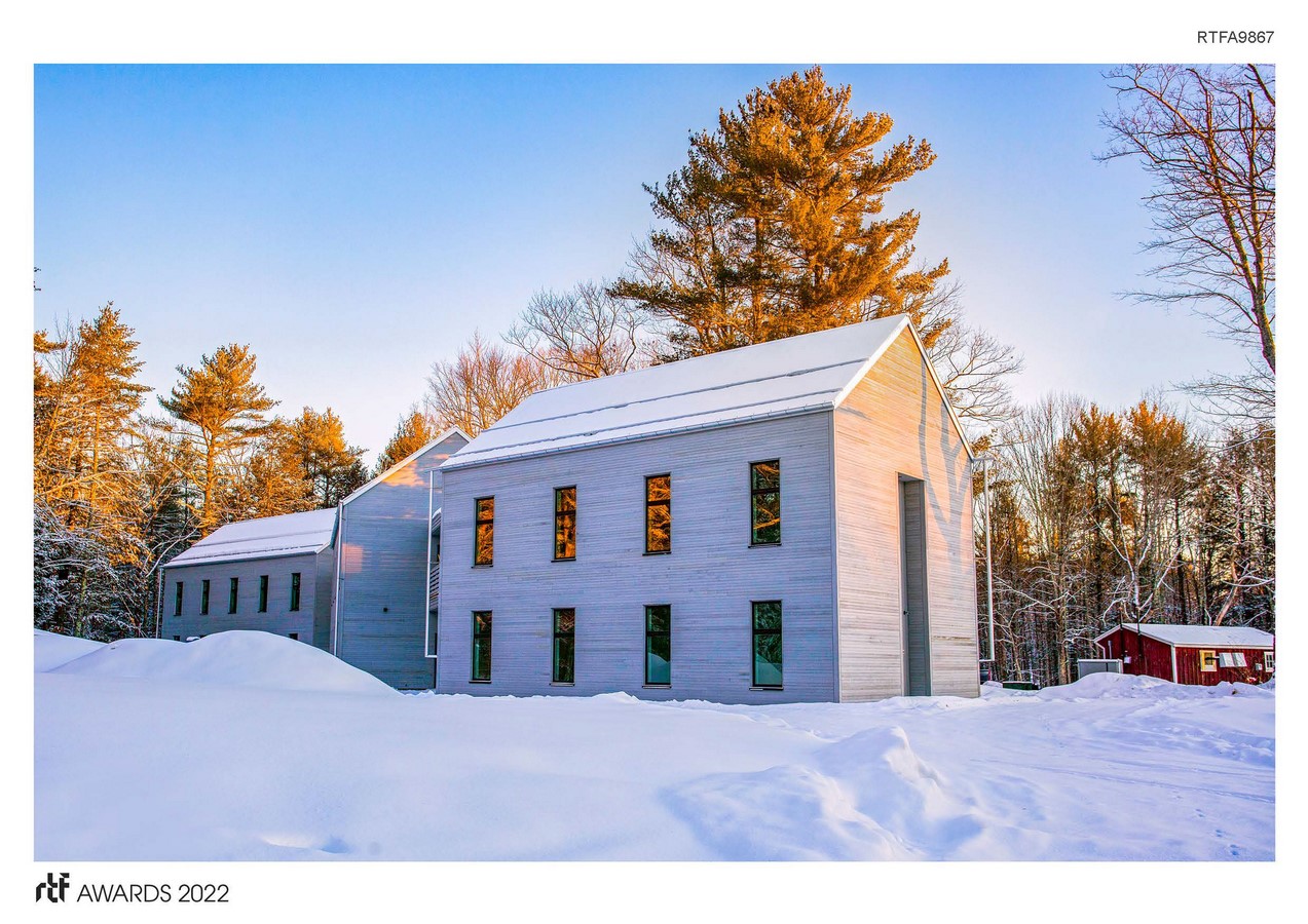 All materials used in the project are free of Red List chemicals, come from responsibly managed industries, and are sourced locally whenever possible. The buildings utilize wood-framed construction and FSC-certified lumber, including 5,000 sf of Maine White Pine siding. Use of metals, concrete, and plastics is minimal.