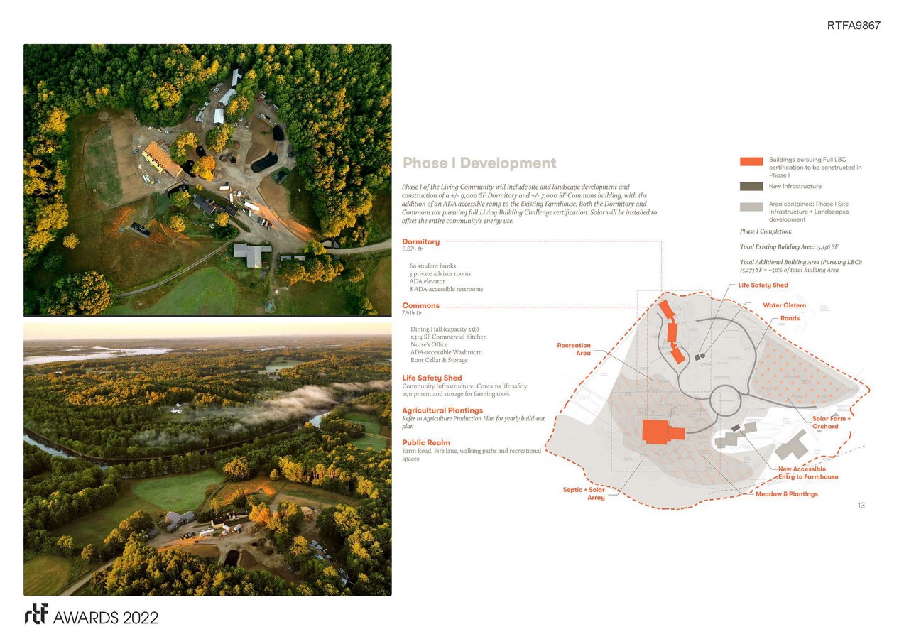The Ecology School campus is first in the world to achieve a Living Community Compliant Master Plan, with efforts to attain final certification ongoing and requiring a full year of occupancy for certification.