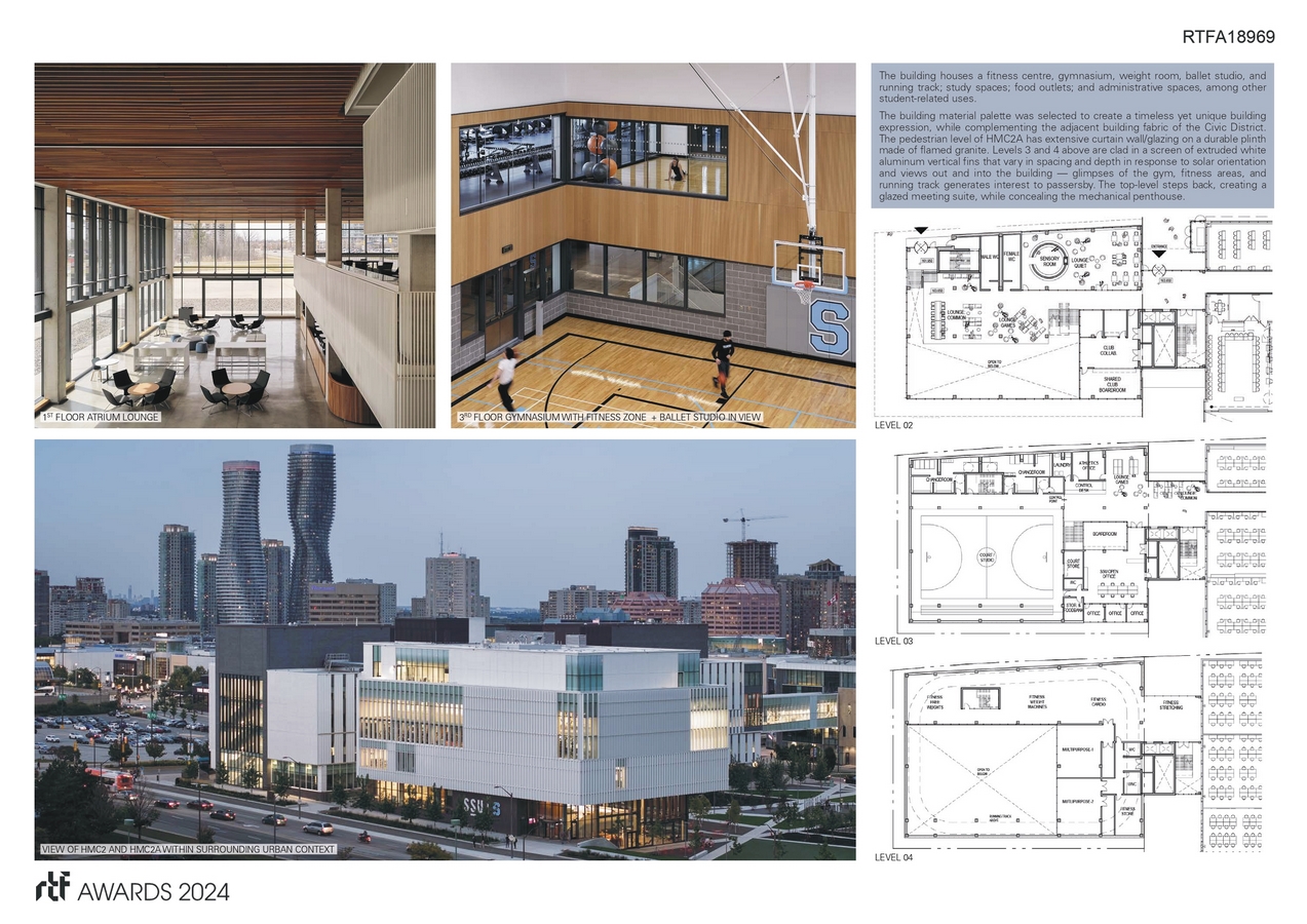 The Hazel McCallion Campus Student and Athletic Centre (HMC2A) is an integral addition to the Sheridan College campus expansion, with a range of amenity spaces and athletics facilities designed to give diversity and depth to the student experience.
