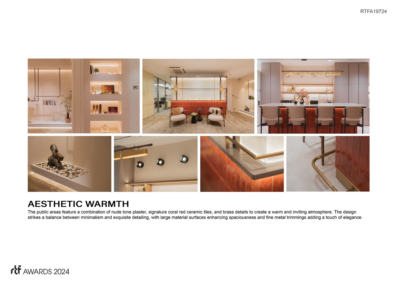 The MIW office project exemplifies the seamless integration of space and style. The design incorporates aesthetics, lifestyle considerations, smart technology, and professionalism to create an inspiring and harmonious workplace. At the heart of MIW’s design philosophy is their commitment to their staff. They treat each team member as valued clients, taking into account the MIW living style when conceptualizing the office design. The result is a workspace that promotes a healthy work-life balance and fosters collaboration and creativity.