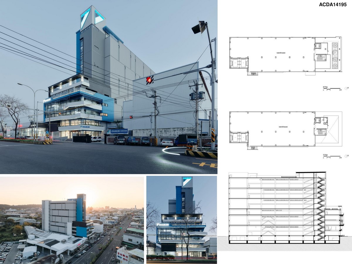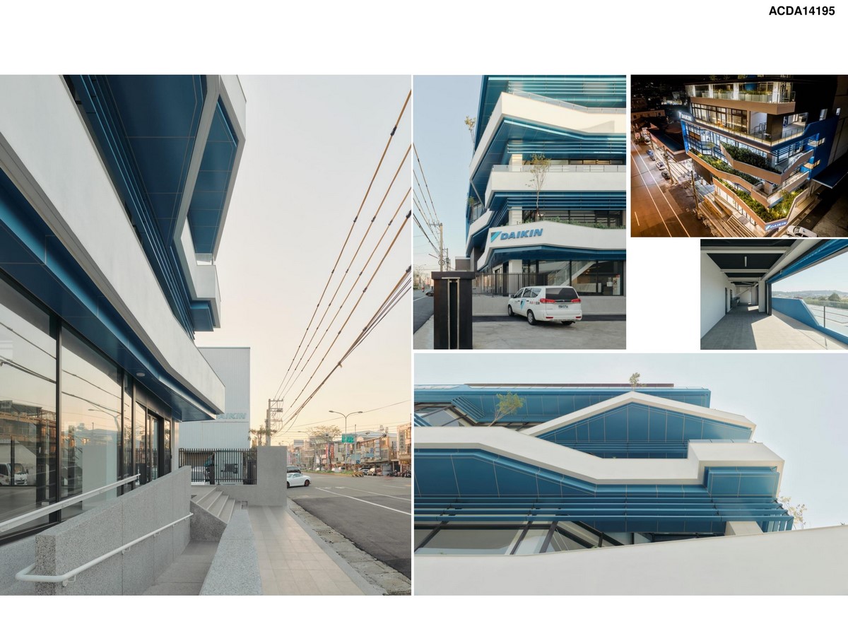 In order to show the world’s top air-conditioning brand image, the Daikin brand image are combined to present a novel commercial functional space. In the shape of the building, the combination of vertical and horizontal building mass responds to the needs of internal use, which clearly presents the aesthetic value of pragmatism, simplicity and grandeur. The space requirements of this building are mainly based on logistics and warehousing space, supplemented by business office and product maintenance space. The logistics and storage space are arranged in the rear, and the office area is placed in the front, forming a distinctive and logical building volume. The low-rise commercial office block is placed in the front, which helps to reduce the impact on the scale caused by the huge volume of storage space, so that the building in this case can present a more cordial and welcoming attitude.