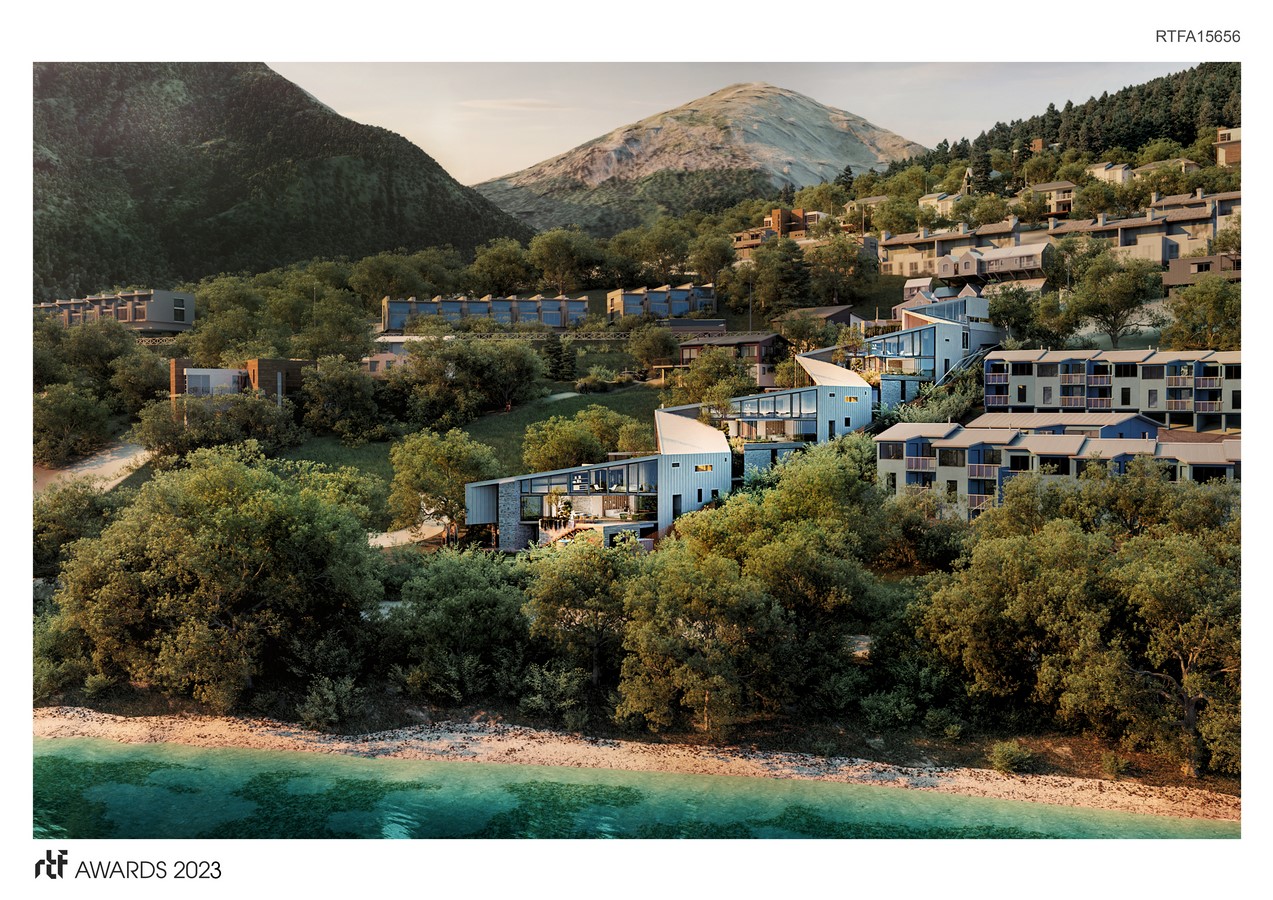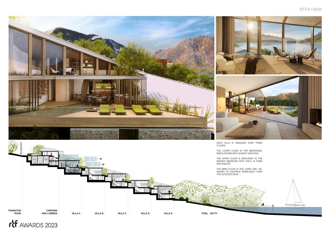 The development is then terraced to provide lake views access to all the villas without obstructions. each dwelling stretches to the full legally allowed width on the site, to expand the view and access it from the higher number of rooms possible.
