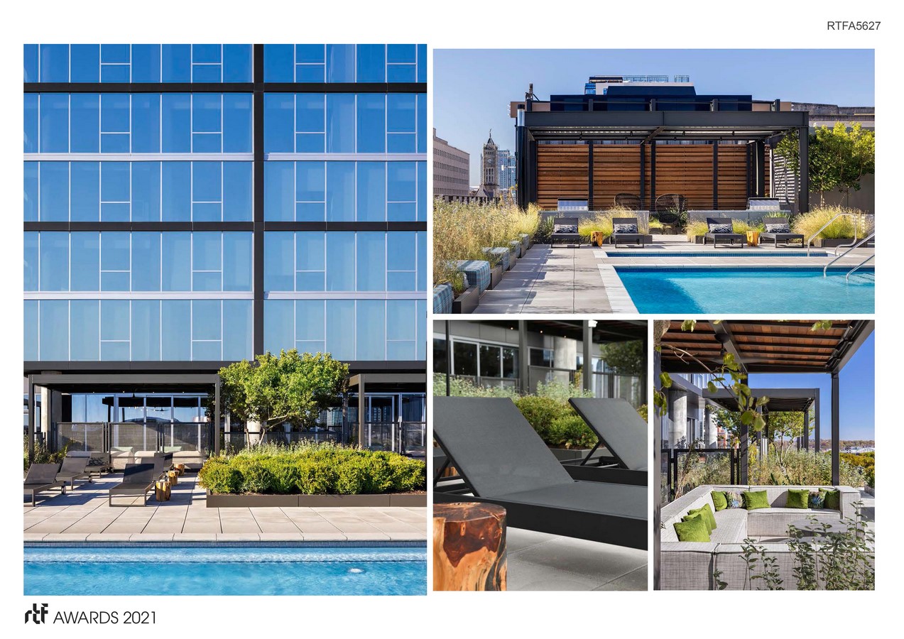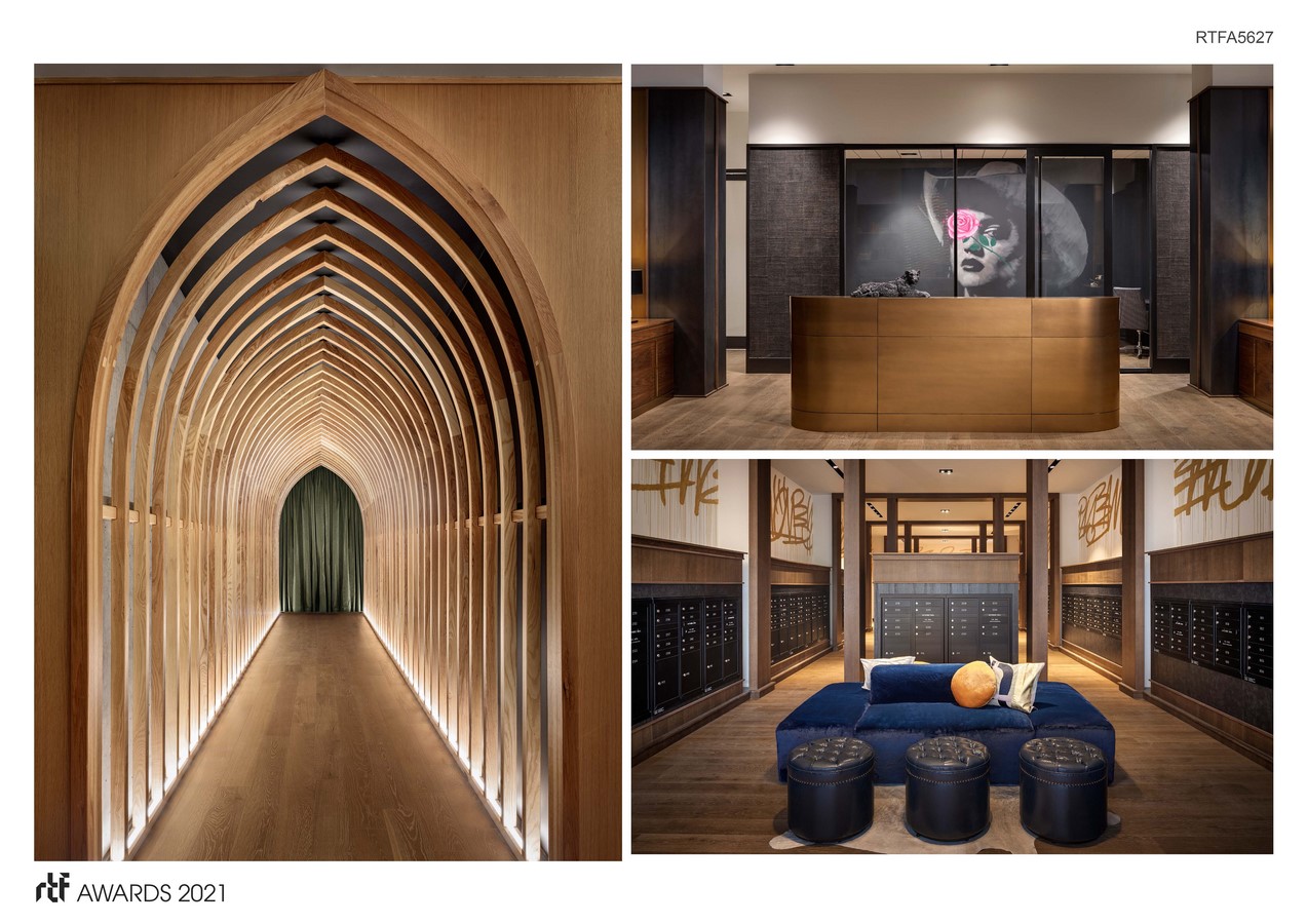 This 34-story tower takes its cues from the city’s rich history and culture, offering its residences: a fully functioning recording studio, The Alley, a gothic-inspired archway and vantage point, the Ruby Lounge, a sumptuous gathering space that features tufted leather walls, luxurious guest suites, outdoor resort style pool and full scale indoor and outdoor fitness facility.