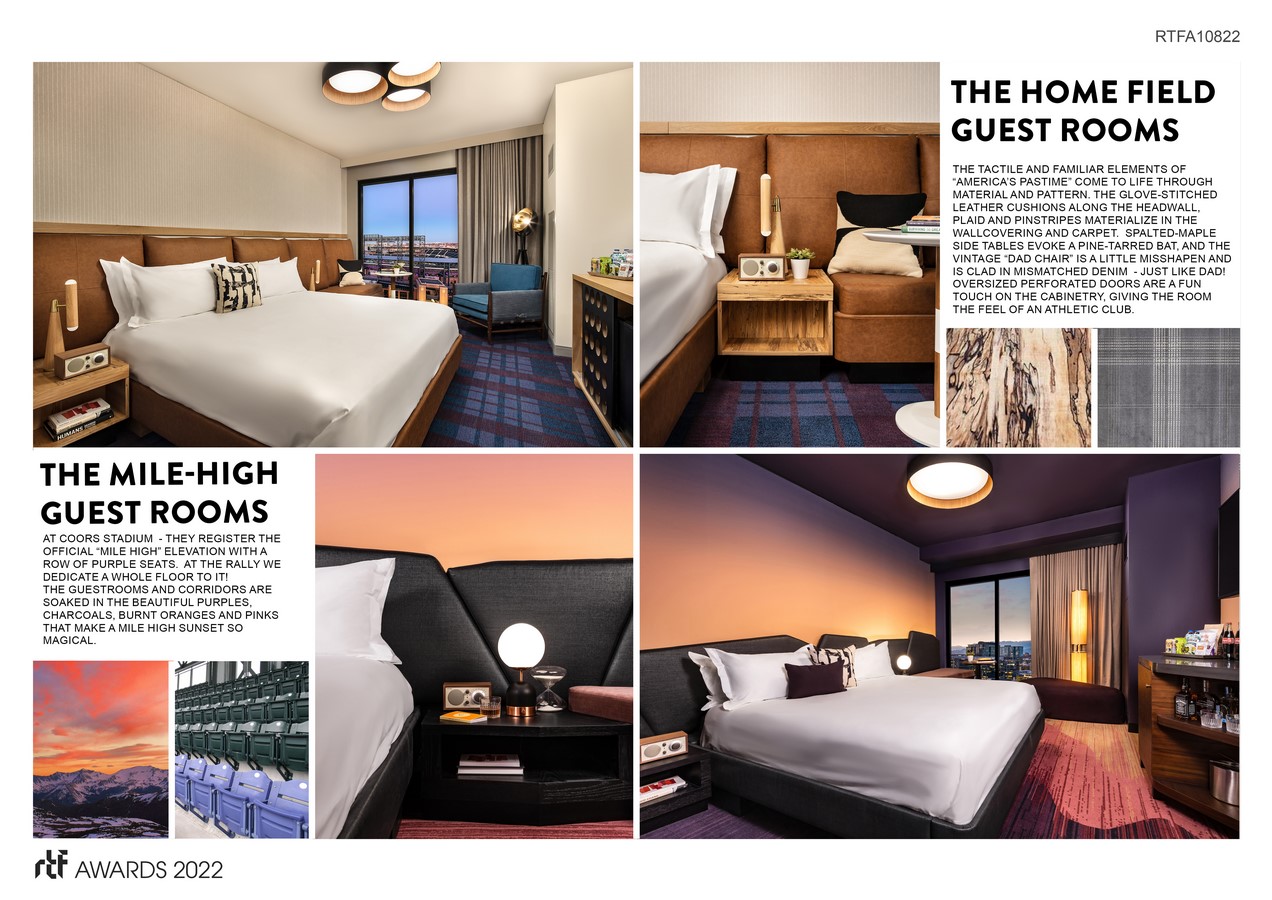 Denver-based Sage Hospitality, tasked with operating the new hotel, asked ICRAVE to design the hotel interiors. The challenge was clear: deliver a design that embraces baseball and enhances the Rockies brand – with style – while maintaining broad appeal to travelers of all walks.