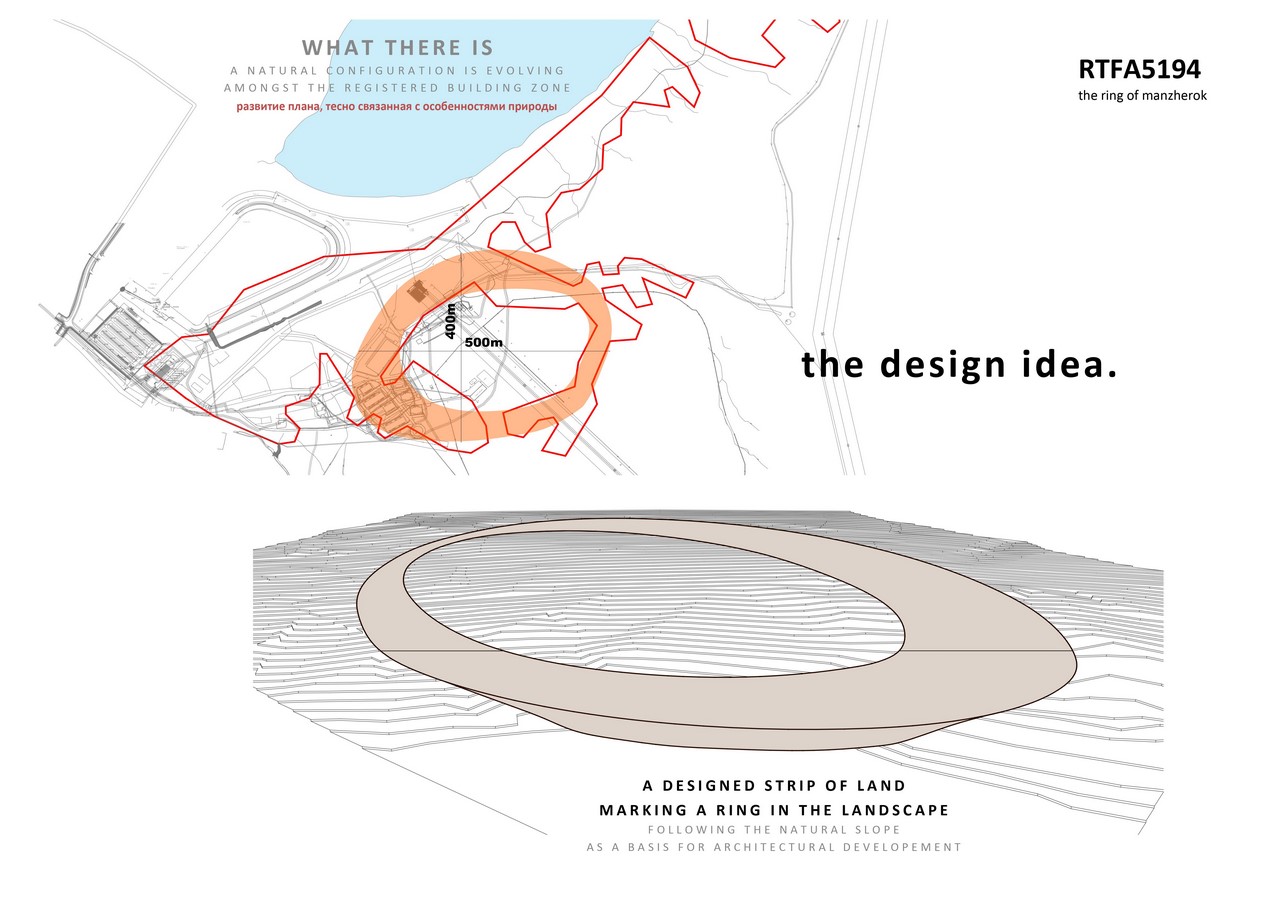 The concept is based on the footprint of a ring with a diameter of about 500m. This ring is forming a landmark also orchestrated with light which can be perceived also from a plane.