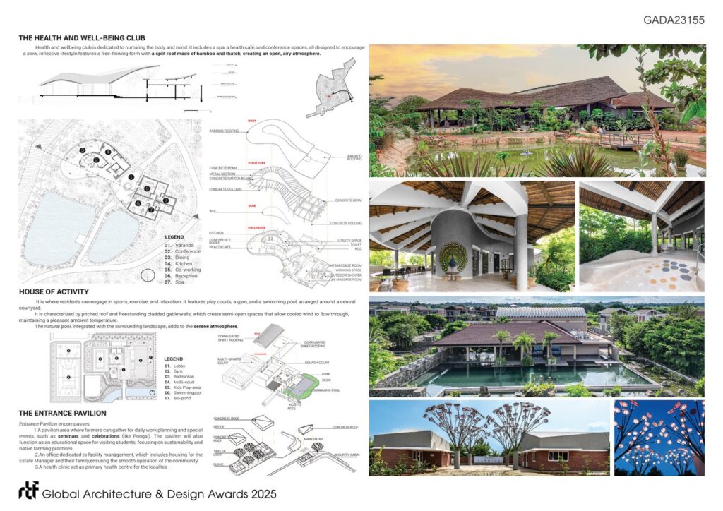Innovative Amenities The “Rurban Hive” and activity clubs combine rural aesthetics with modern functionality, using natural materials and sustainable cooling techniques. These communal spaces serve as hubs for social and cultural activities, reinforcing the community’s collaborative spirit.