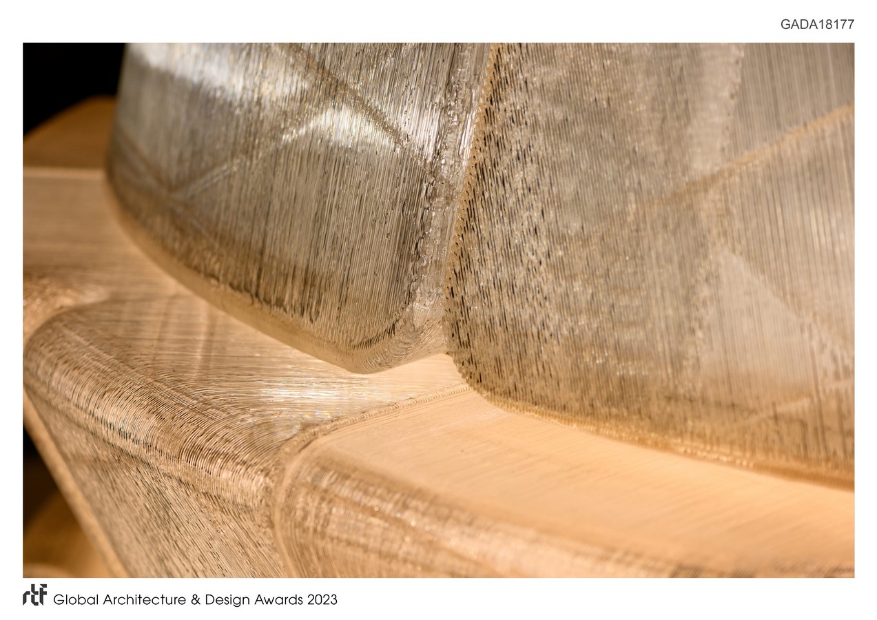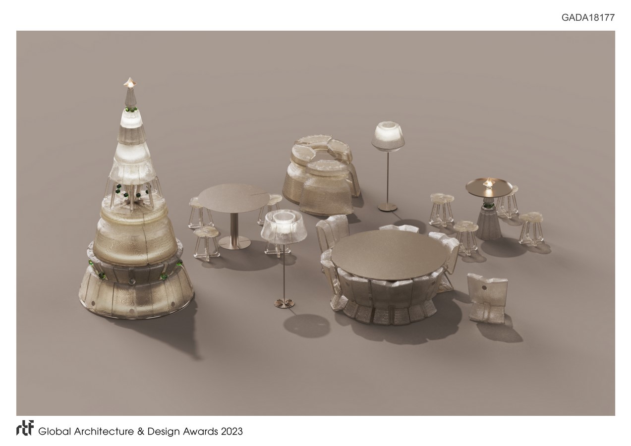 It contains a total of 7 layers; each layer carefully designed to be reconfigured into furniture sets that comprises of biodegradable materials sourced from 38,600 recycled plastic bottles at The Upper House and the upcycled materials from EDITECTURE.