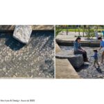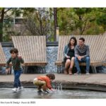 Given the challenges posed by climate change, the design of this park integrates careful strategic planning that addresses some of the extreme weather conditions faced by this city. Houston’s average temperature has increased to 92°F with relative humidity typically ranging from 60 – 90%. To mitigate these conditions, the design integrates 69,400 square feet of shade canopies and 380,000 square feet of cool, permeable pavement, ensuring climate-conscious comfort. A variety of water features cool the landscape and offer a variety of immersive experiences.