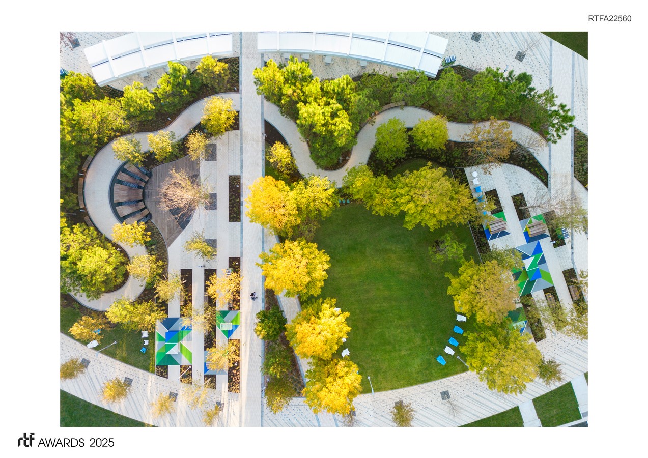 A tapestry of expansive gathering areas, play zones, and intimate contemplative gardens provide a diverse range of experiences for this diverse community. Designed using a neurodiversity toolkit that prioritizes play, discovery, and care, the park creates landscapes that celebrate the multi-sensory experience and offers flexible, customizable spaces for both refuge and meaningful community interaction.