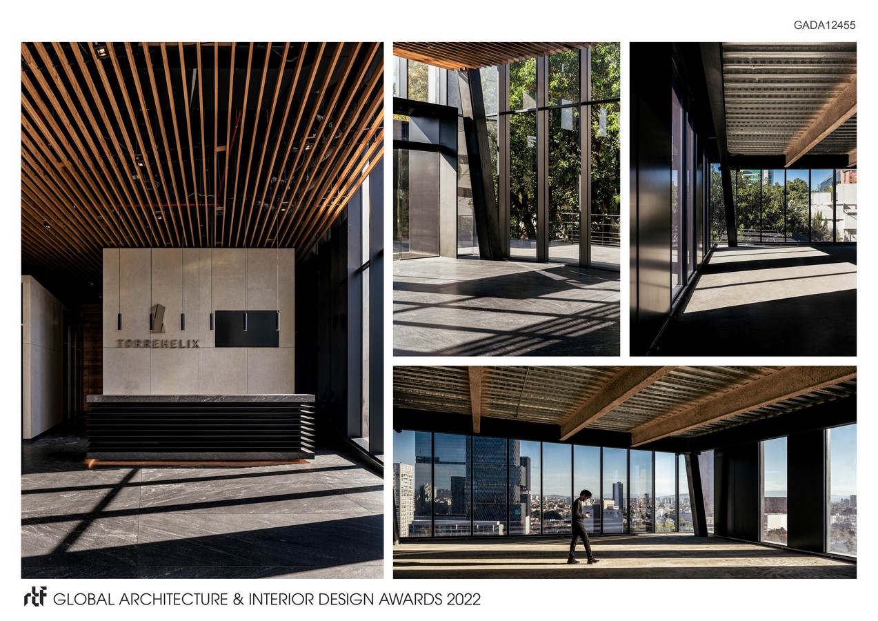 The decision of the turn is also related to the search for improvement in thermal behavior, this gesture allows the building to self-generate shade so that the sun is a source of natural lighting without affecting the temperature of the building for users; These factors, added to several strict processes and design decisions, make Torre Helix the first non-private corporate building with a LEED Platinum Certification in Guadalajara.