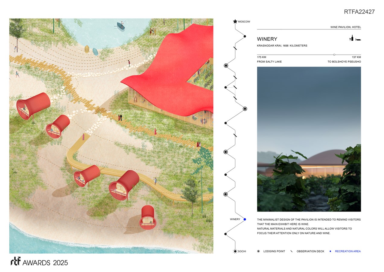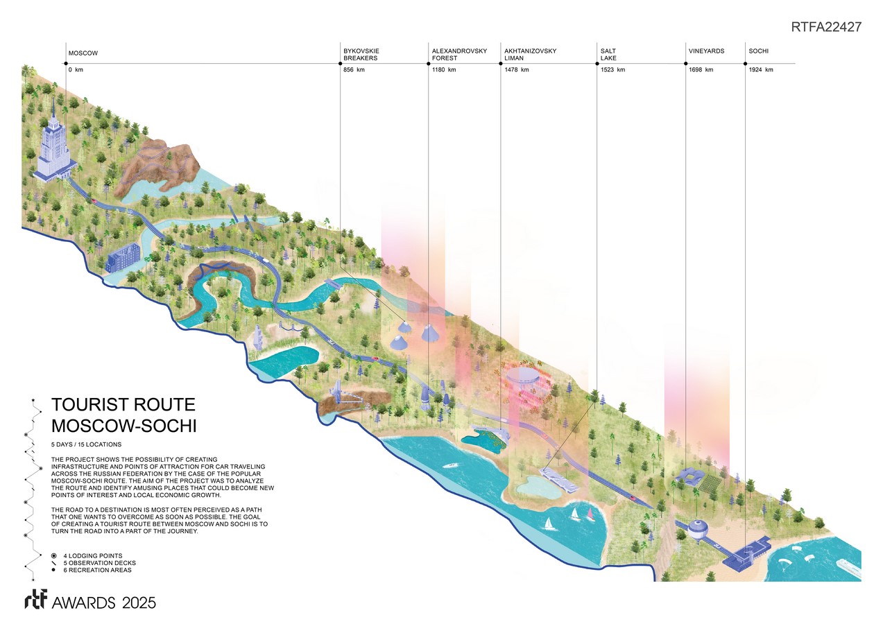 The project shows the possibility of creating infrastructure and points of attraction for car traveling across Russian Federation by the case of the popular Moscow-Sochi route.