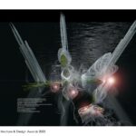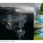 The hotel’s vertical structures can submerge into the depths of the Pacific Ocean to avoid the impact of a tsunami. The design draws inspiration from floating pontoons, buoys, sleeping humpback whales, and submersible vessels, as well as vertically moored tension leg oil rig platforms.