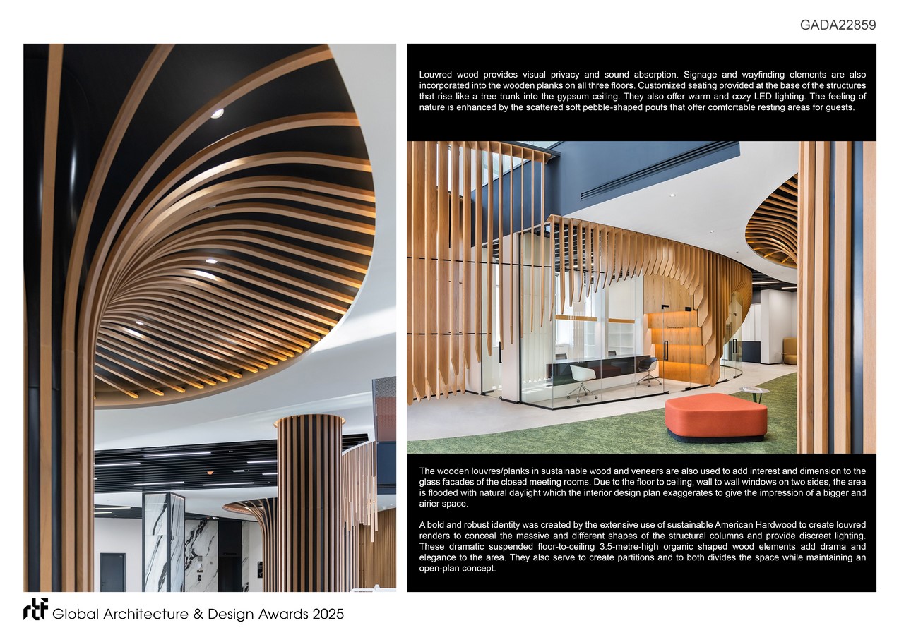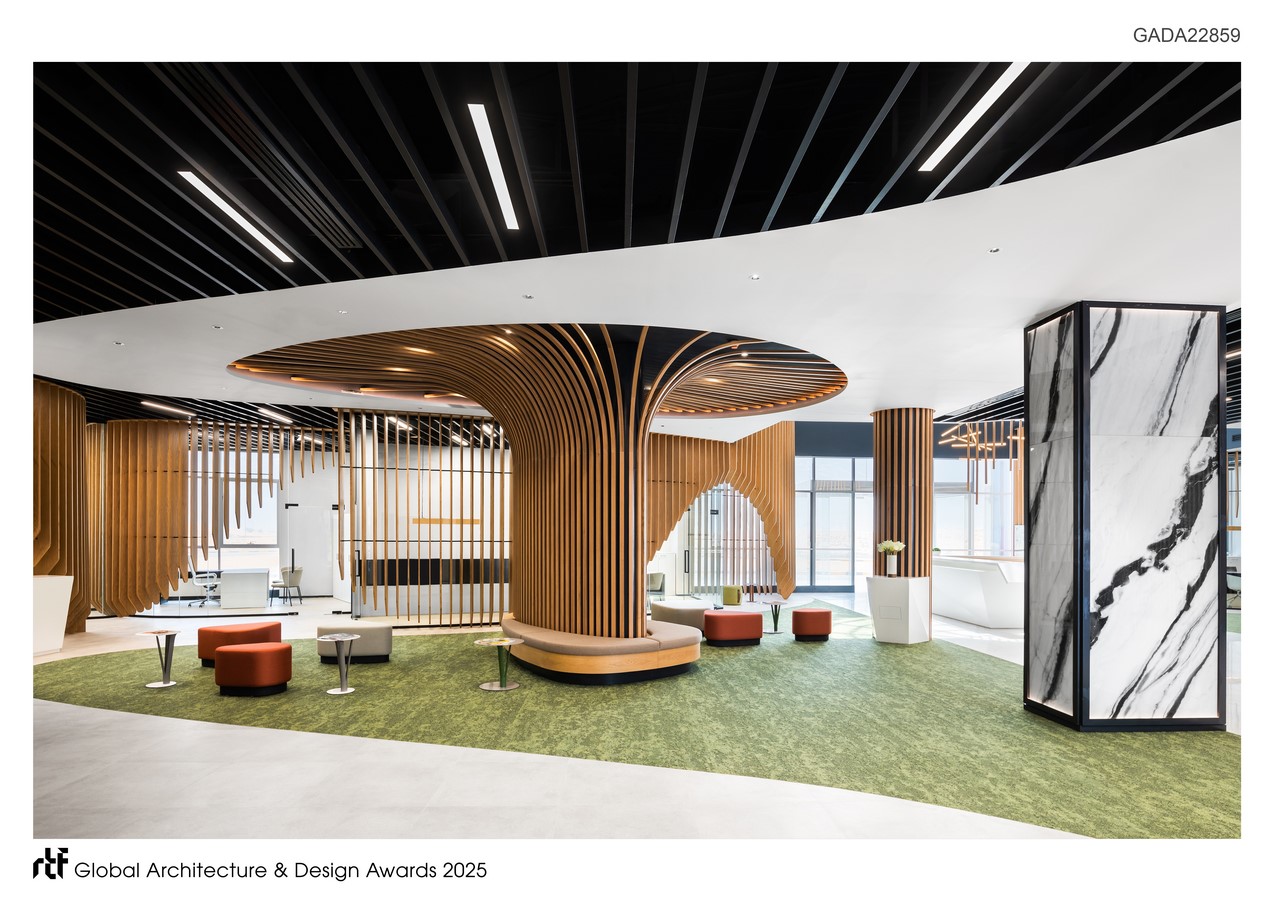 In areas intended for collaboration and informal interaction—such as meeting spaces and shared work zones—the design continues the natural material palette and relaxed atmosphere. These spaces are conceived to foster spontaneous conversation and teamwork while maintaining visual and functional continuity with the rest of the interior environment.
