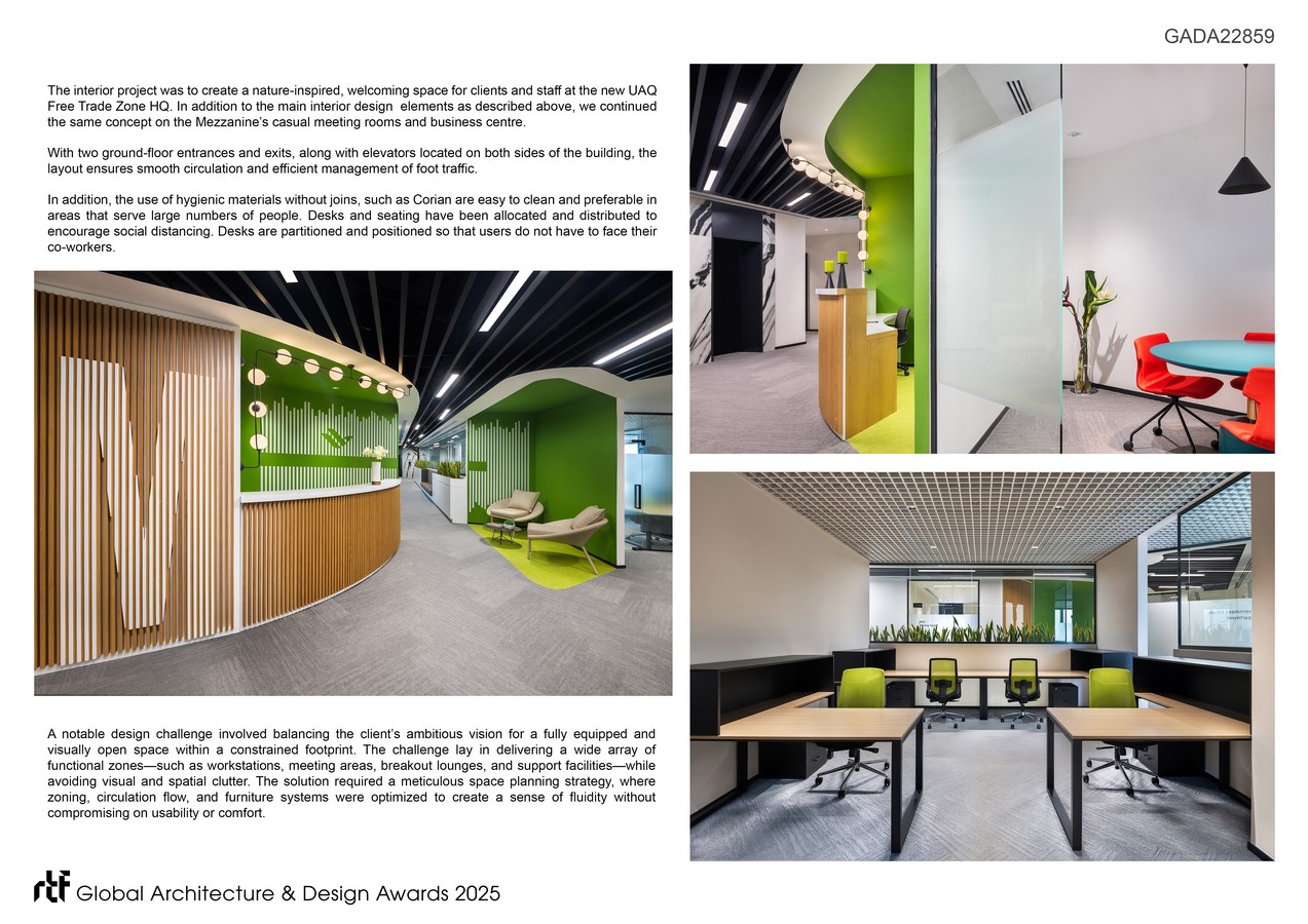 This interior design project is part of a broader Phase 2 design and build initiative for a six-story commercial building in the Umm Al Quwain Free Trade Zone (UAQ FTZ). The scope of work focuses on developing key interior spaces that reflect the client’s vision of creating a fresh, simple, warm, and welcoming environment—an interior that sets a new benchmark for commercial design in the region.