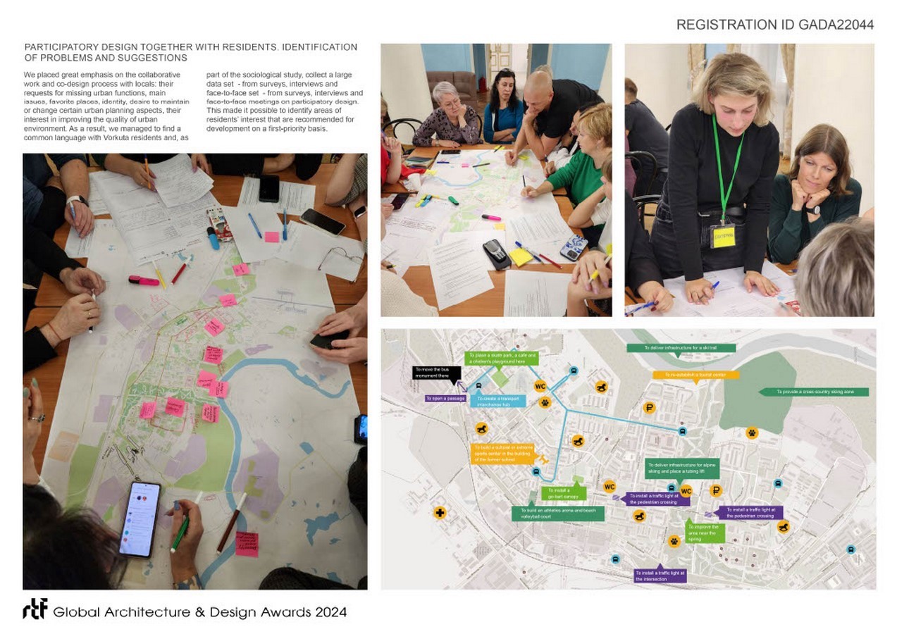 We placed great emphasis on the collaborative work and co-design process with locals: their requests for missing urban functions, main issues, favorite places, identity, desire to maintain or change certain urban planning aspects, their interest in improving the quality of urban environment. As a result, we managed to find a common language with Vorkuta residents and, as part of the sociological study, collect a large data set – from surveys, interviews and face-to-face meetings on participatory design. This made it possible to identify areas of residents’ interest that are recommended for development on a first-priority basis.