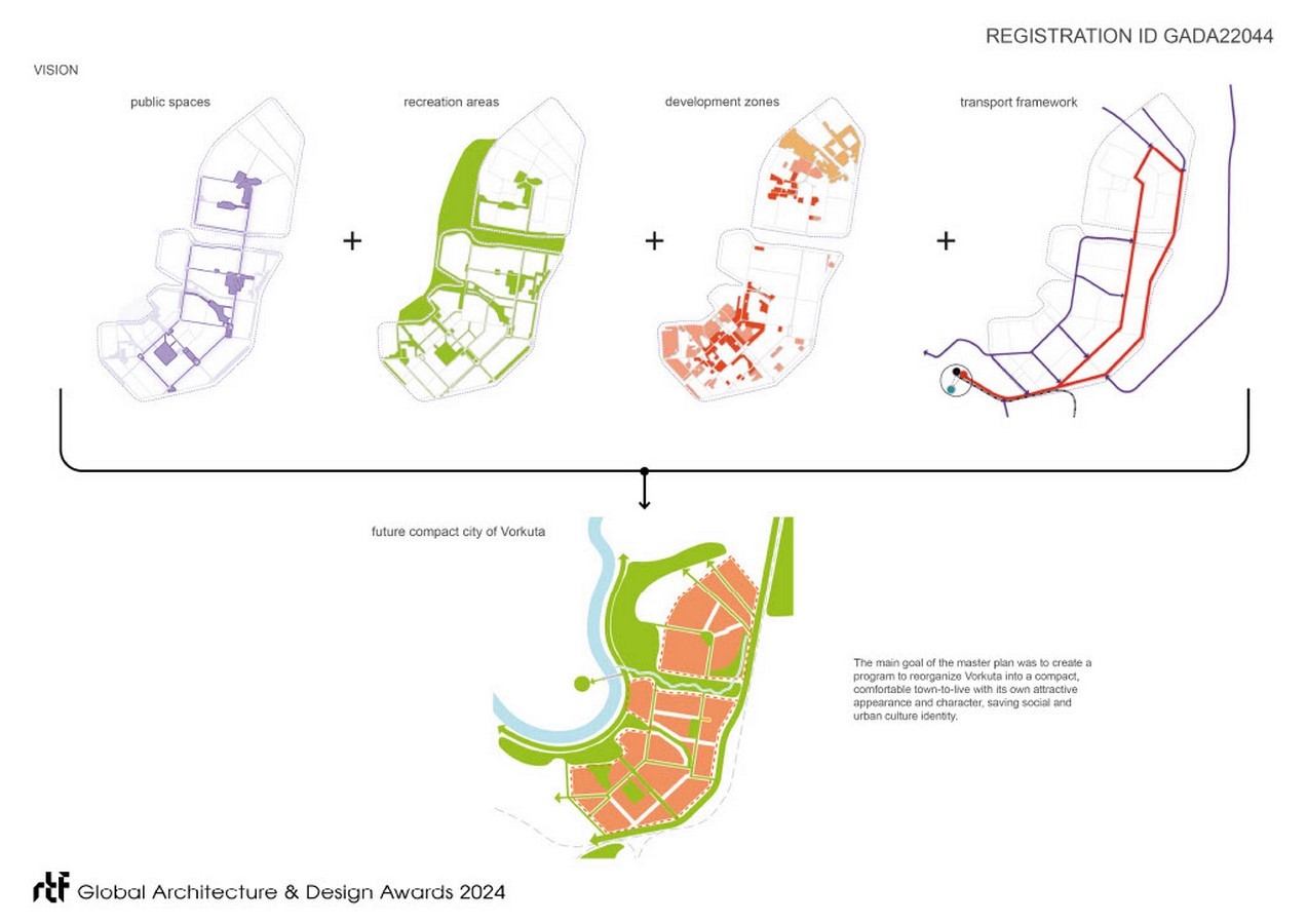 The main goal of the master plan was to create a program to reorganize Vorkuta into a compact, comfortable town-to-live with its own attractive appearance and character, saving social and urban culture identity.