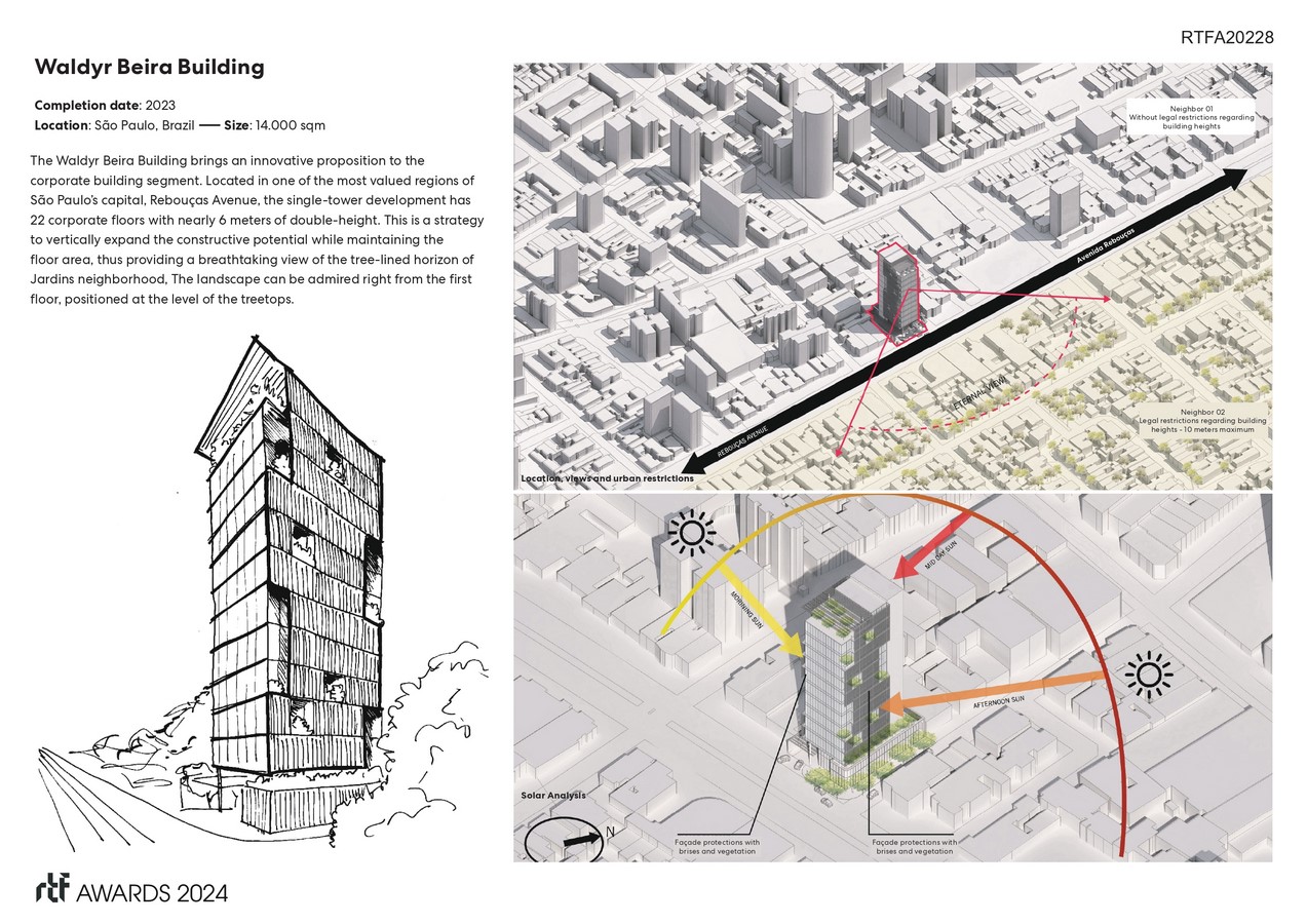 The Waldyr Beira Building, developed by Perkins&Will São Paulo for Construtora e Incorporadora Pedra Forte, presents an innovative approach to corporate buildings in São Paulo’s Rebouças Avenue.