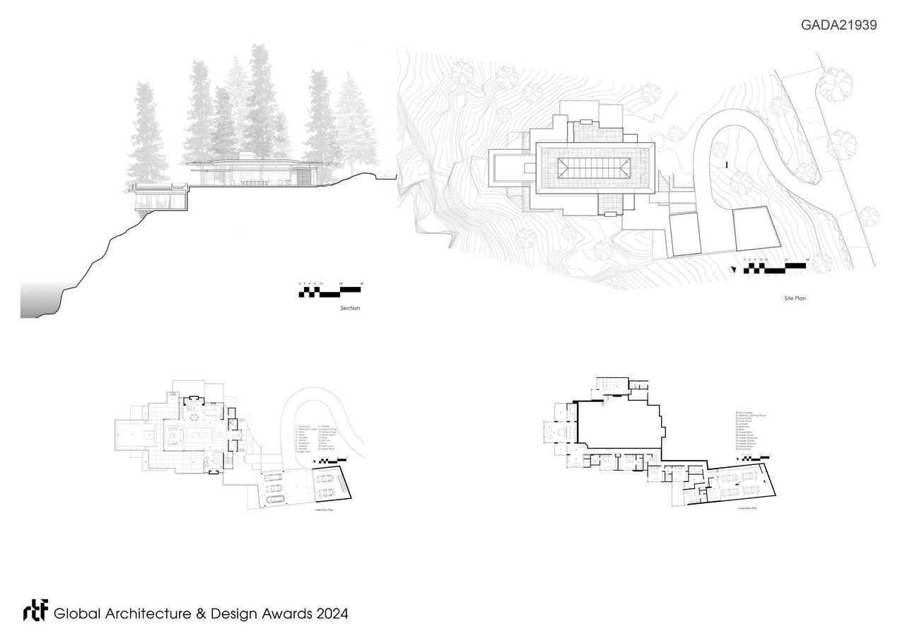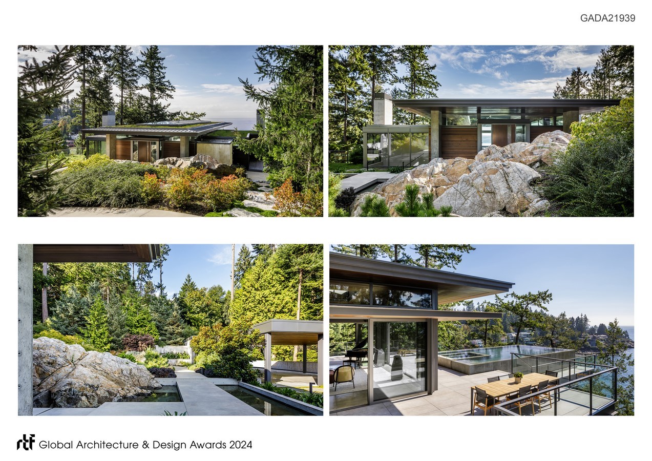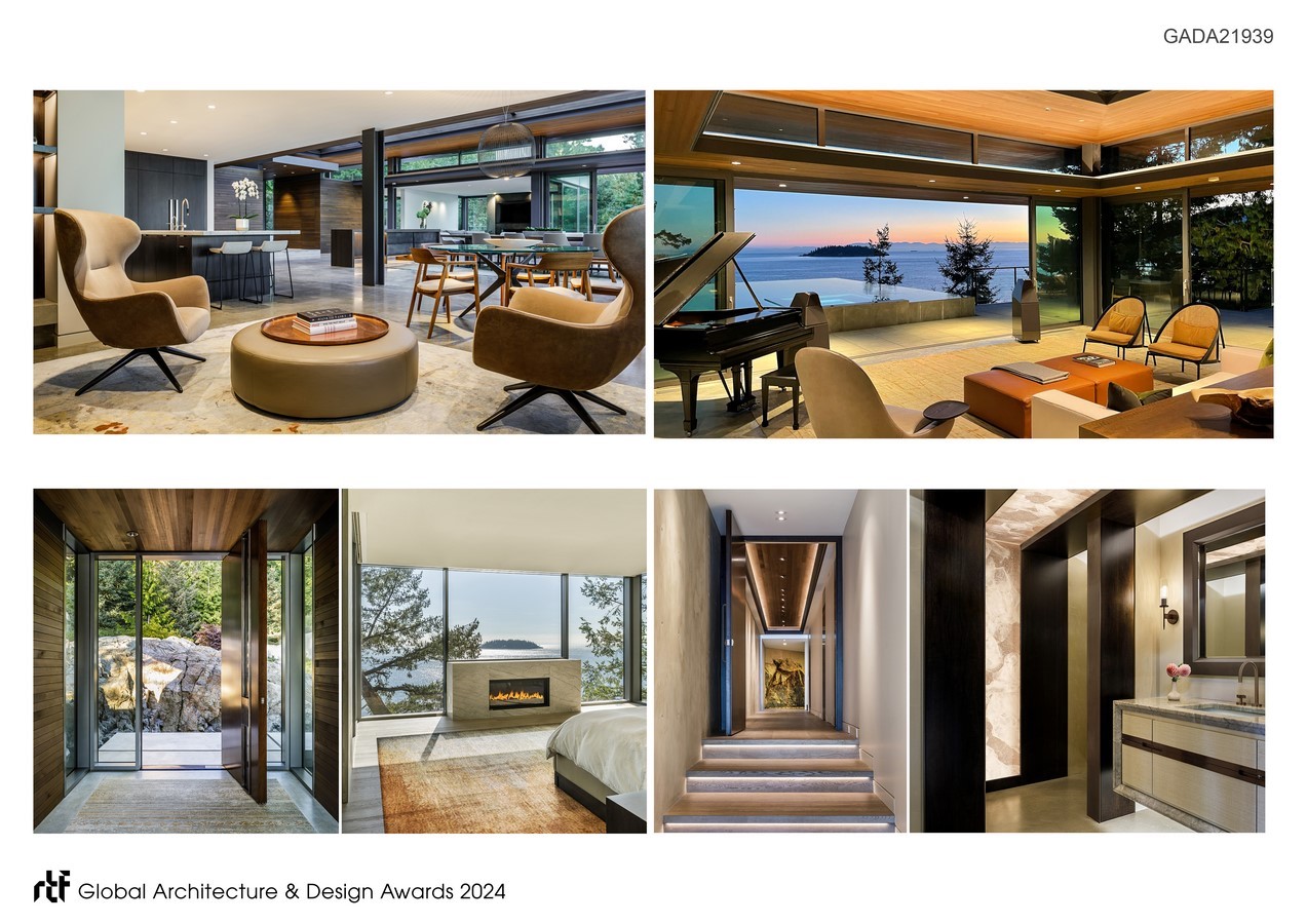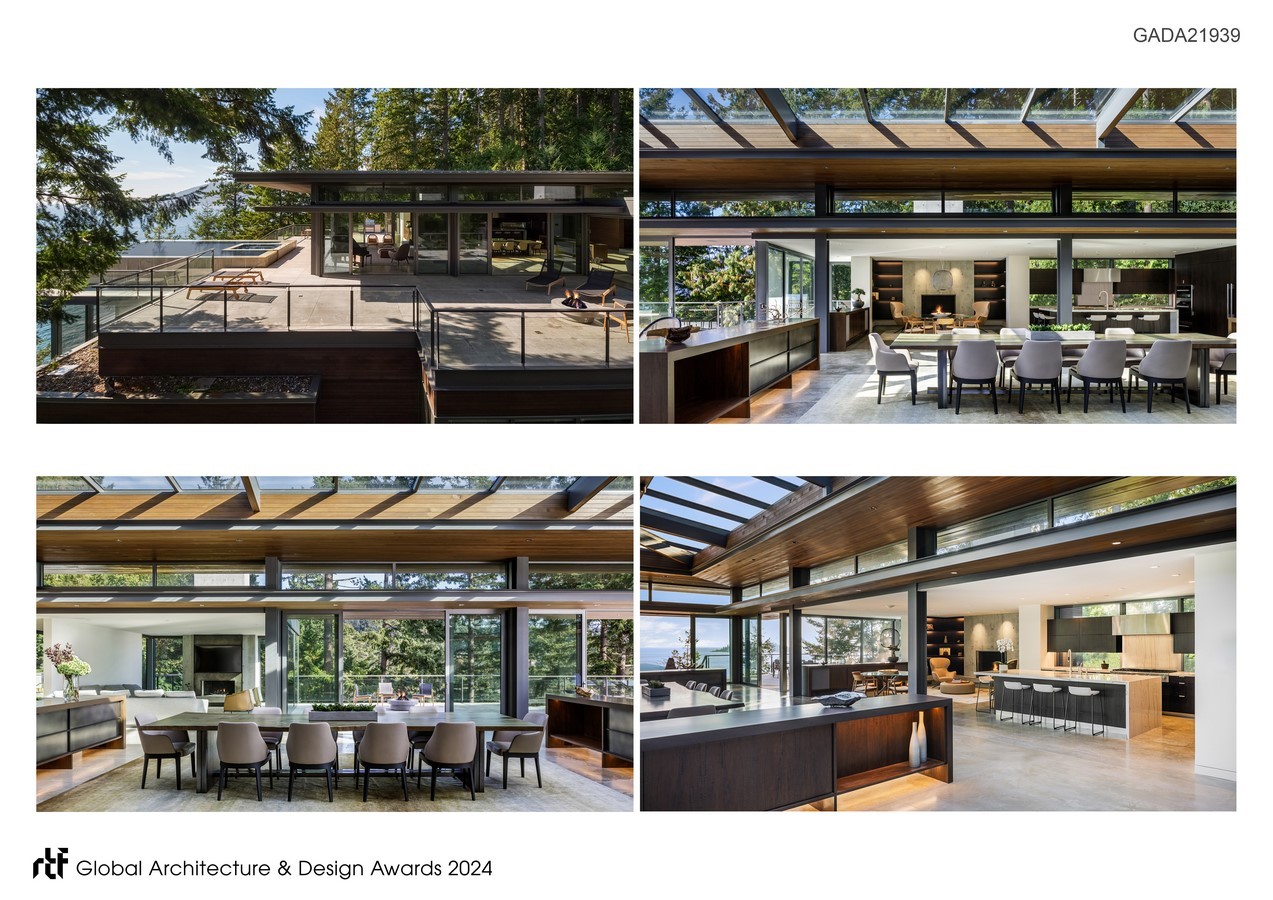 This creates a low, site-sensitive profile for the overall composition. By integrating natural elements, we have crafted interior spaces that seamlessly blend with the beauty of the surrounding environment.