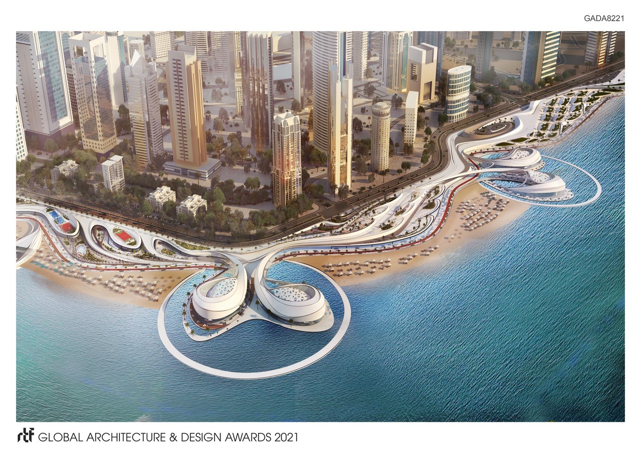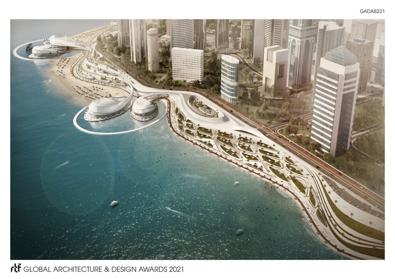 project’s aim is to Create a distinctive and activated waterfront that that is family orientated providing creates a new destination offering appropriate attractions and facilities for residents and visitors alike, and to Connect West Bay North and the Corniche to the waterfront.