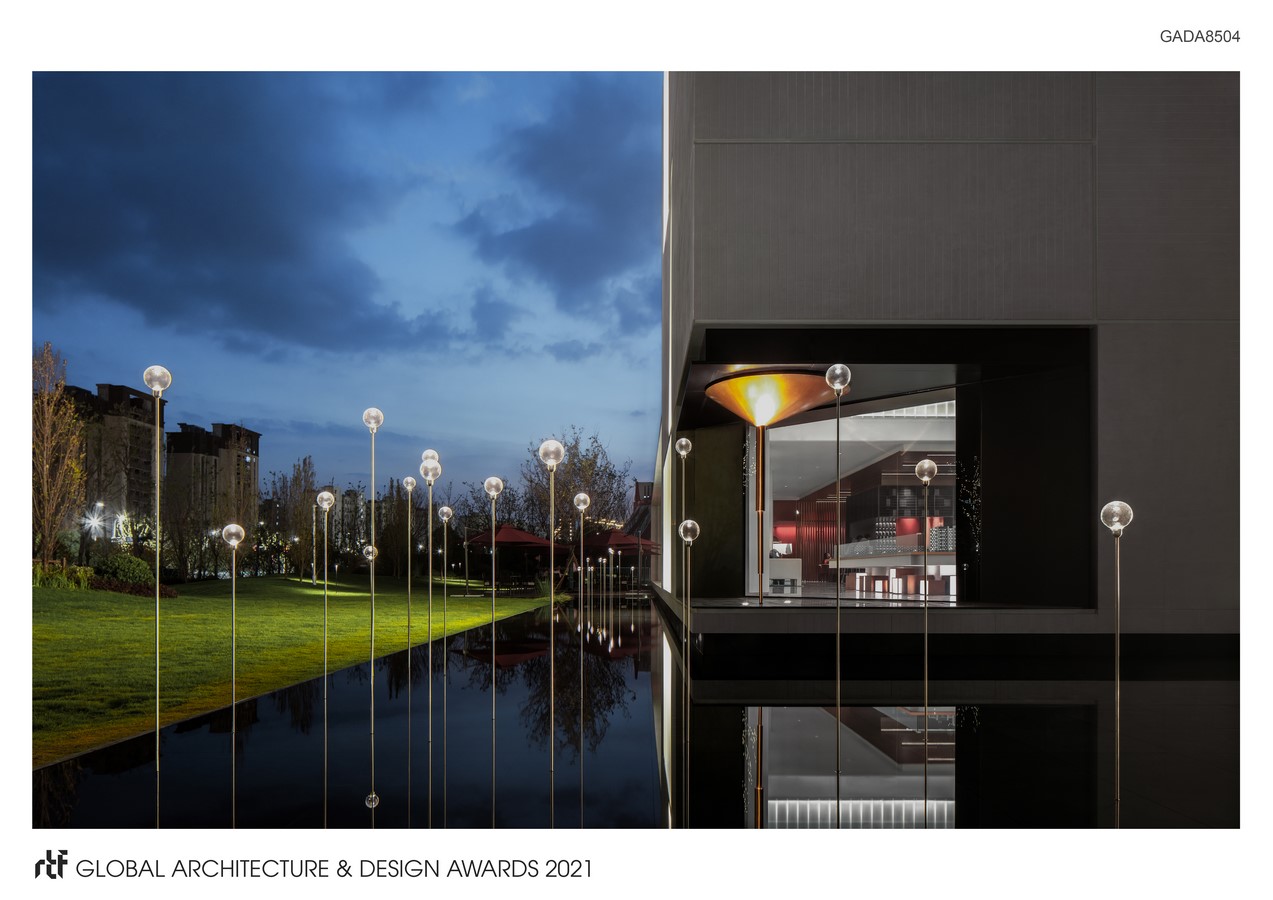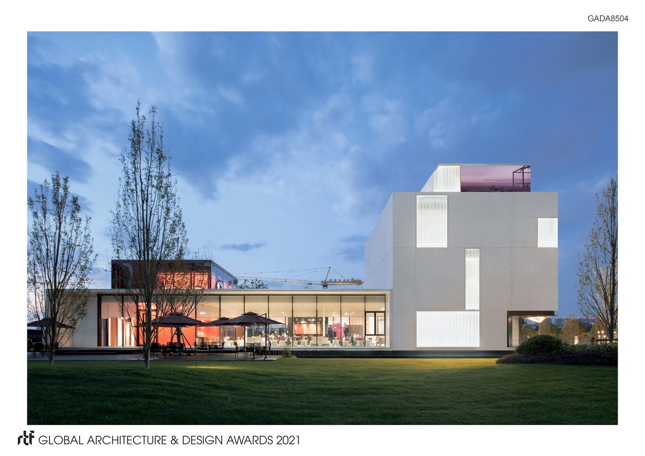 An undulations green park is built between building and city. In this park, different sense changes with the seasons. It invites people to visit with open posture. Stroll, jogging, take photos and kid’s fun, all of this bring vigorous vitality to the surrounding community. The original lawn and calm water make the sense of environment as paintings by Cézannes, which brings people happiness by escape from reality. As a new building of this area, to achieve the harmony with surroundings, the small volume building tries very hard to contact with outside world via different construction method. Plenty floor height and high-quality building material reflect the understanding of comfortable space and responsible attitude of the architect.