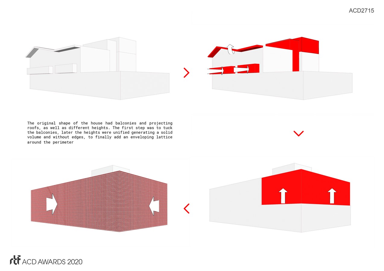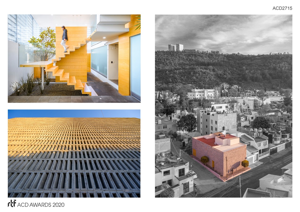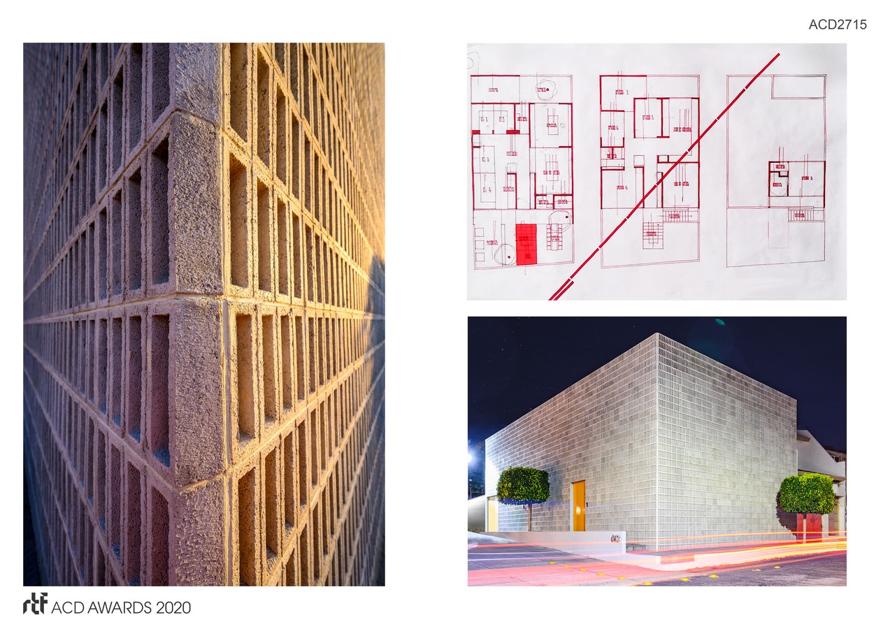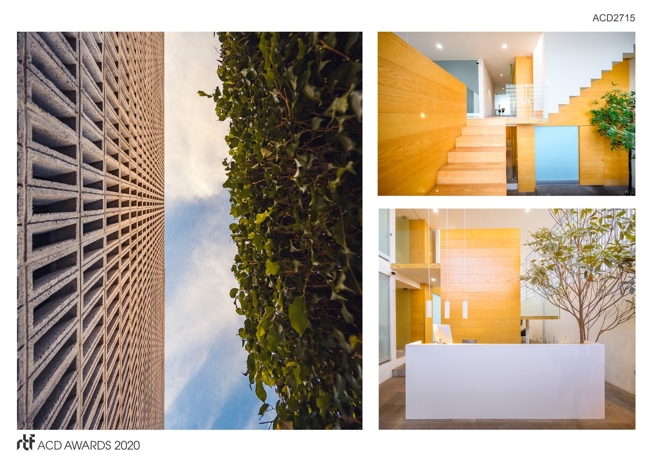 With a limited budget, the project respected the existing construction as much as possible, minimally altering the original structure, which finds the true protagonist of a skin façade made of perforated concrete blocks as a latticework, which also serves as a controlling element for light, ventilation and temperature, due to the sunlight that is received naturally inside, as the access lobby is west orientated, at the same time that it generates an obvious shelter to the interior activities that allows the user to sense larger spaces, due to the use of white color on smooth walls and double heights in common areas, in contrast to the furniture and coatings on wooden walls.