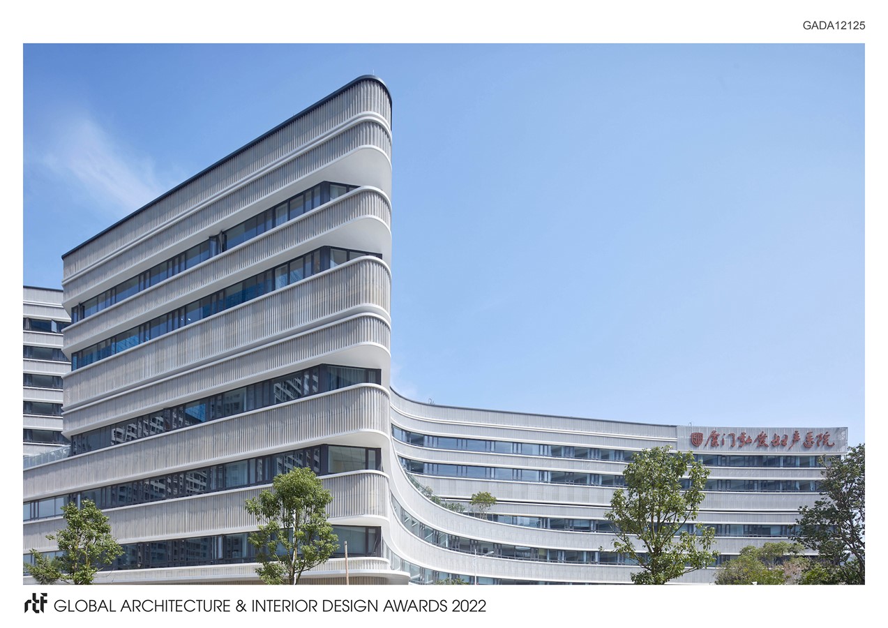 Completed in September 2021 with a construction surface of 96,000m2 and 600 numbers of beds, Xiamen Humanity Maternity Hospital brings a precise design which seeks a leading example for a better professional service from both gynaecologists and obstetrics. This improvement of efficiency is explored through its unique form which aims to make childbirth and its related medical treatments as positively memorable as possible.