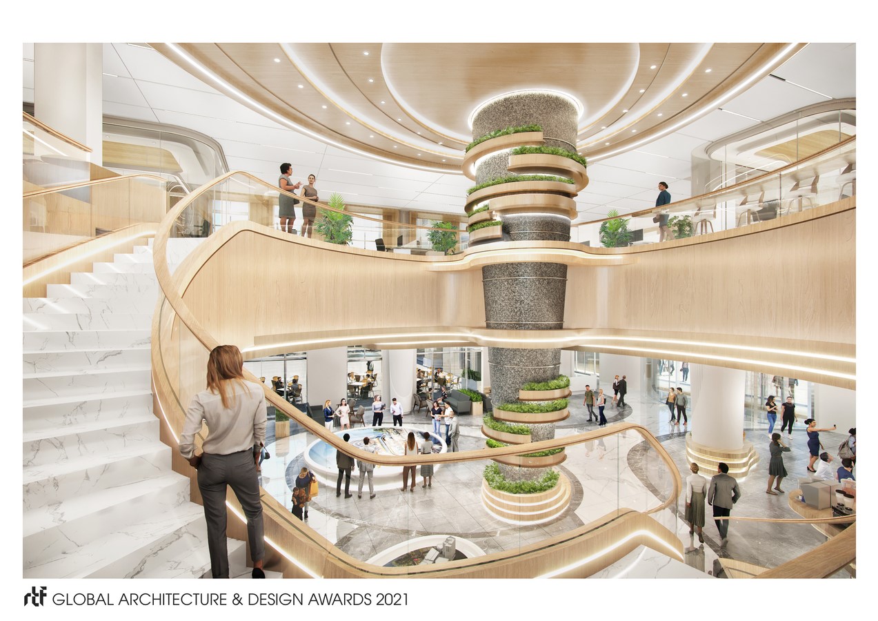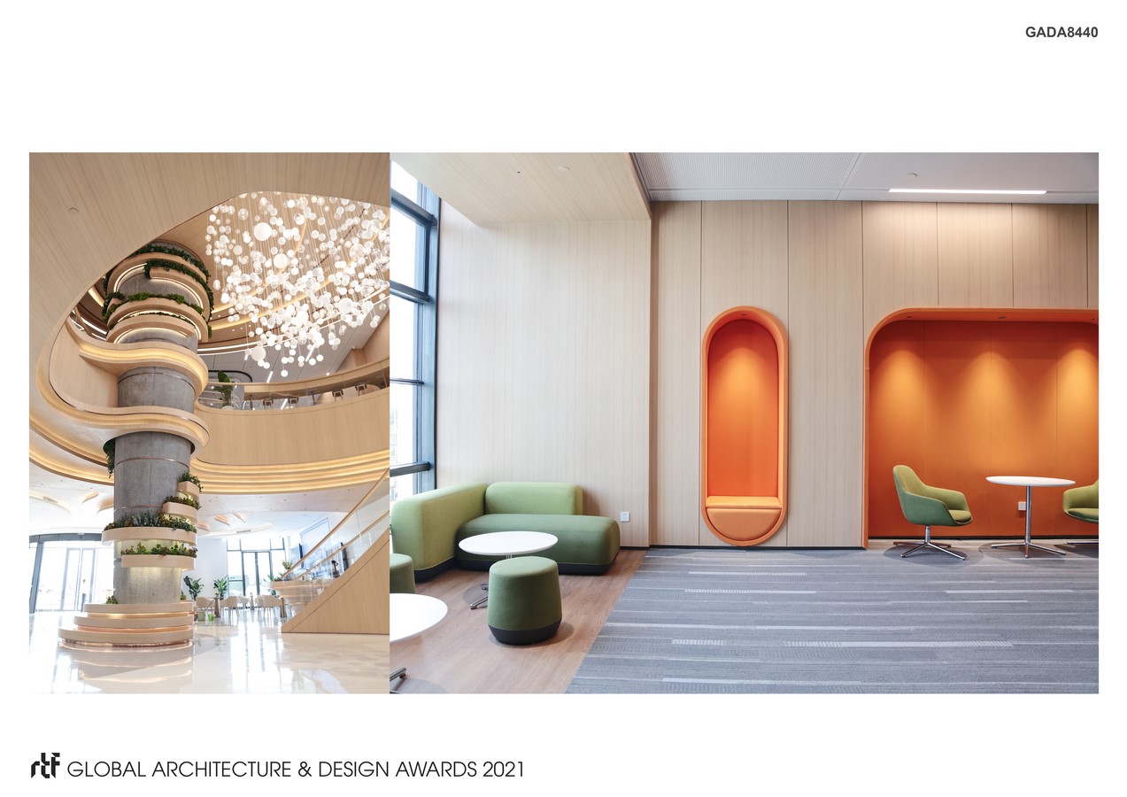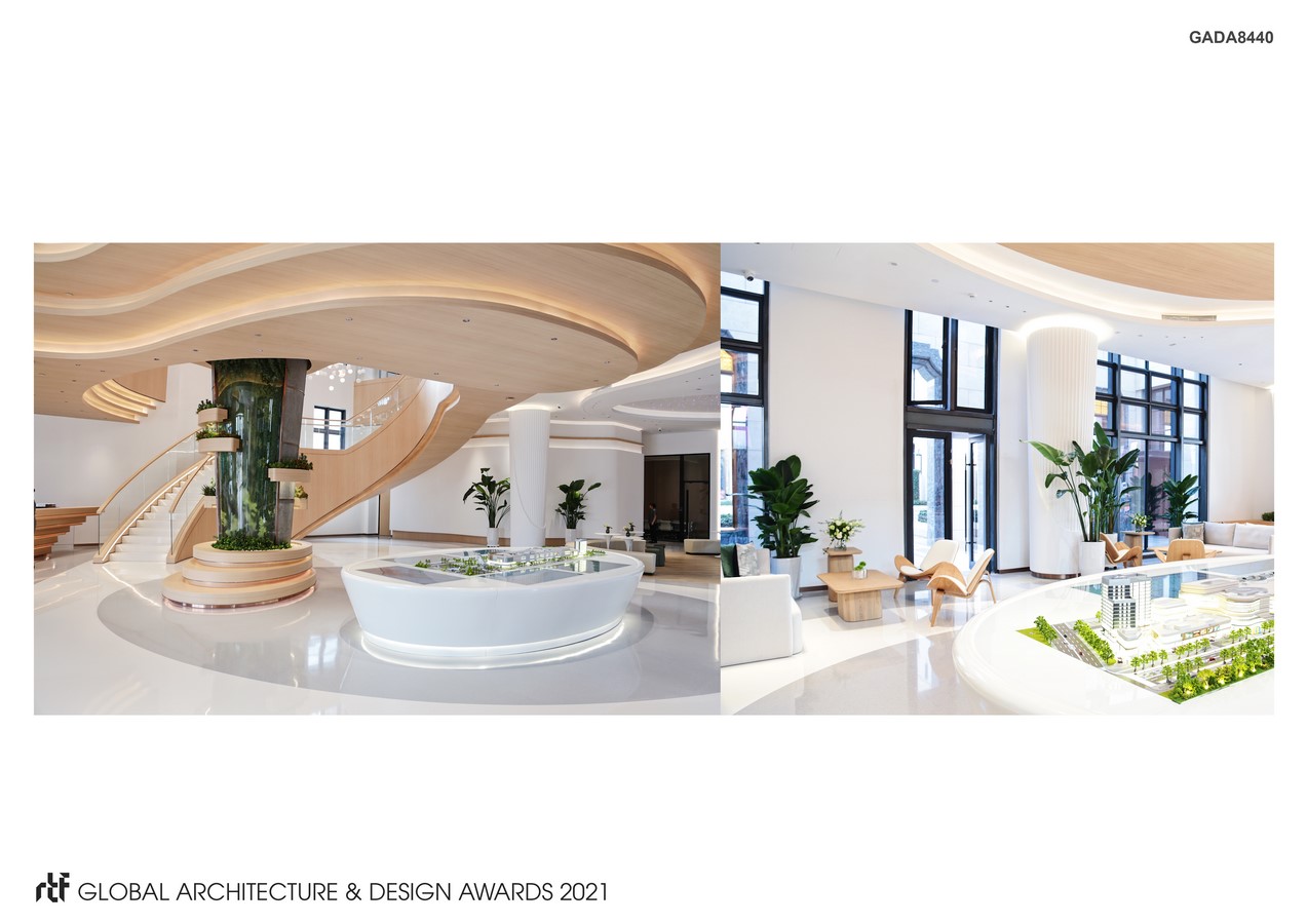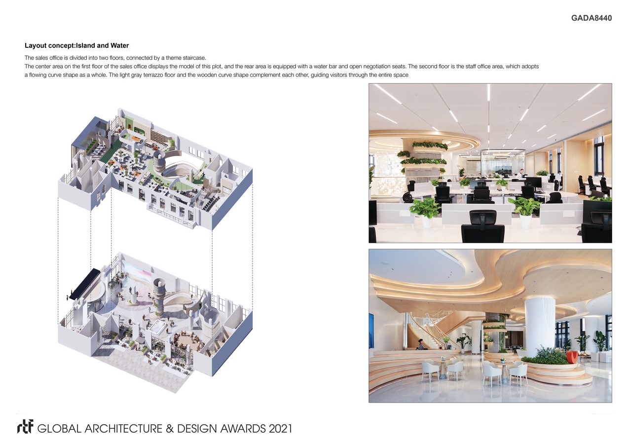 The interior design presents the harmonious relationship between human and nature, and it was realized and summarized in an “Island and Water” composition layout concept.