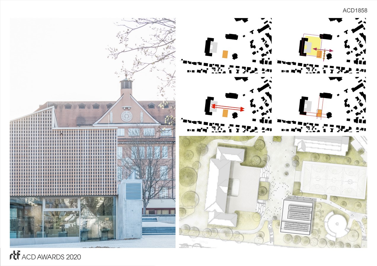 Room climate und lighting conditions have a demonstrable impact on educational success. Thanks to the use of environmental energies, the science block enjoys high levels of natural lightning and thermal comfort. Pre-construction trials with various different roof shapes revealed that the north-facing shed roof design provided the highest levels of daylight yield for the new science block. Alongside good room acoustics the school building offers a high-quality interior environment. This fosters a sense of wellbeing that increases user acceptance, reduces vandalism and helps creating identity and identification.